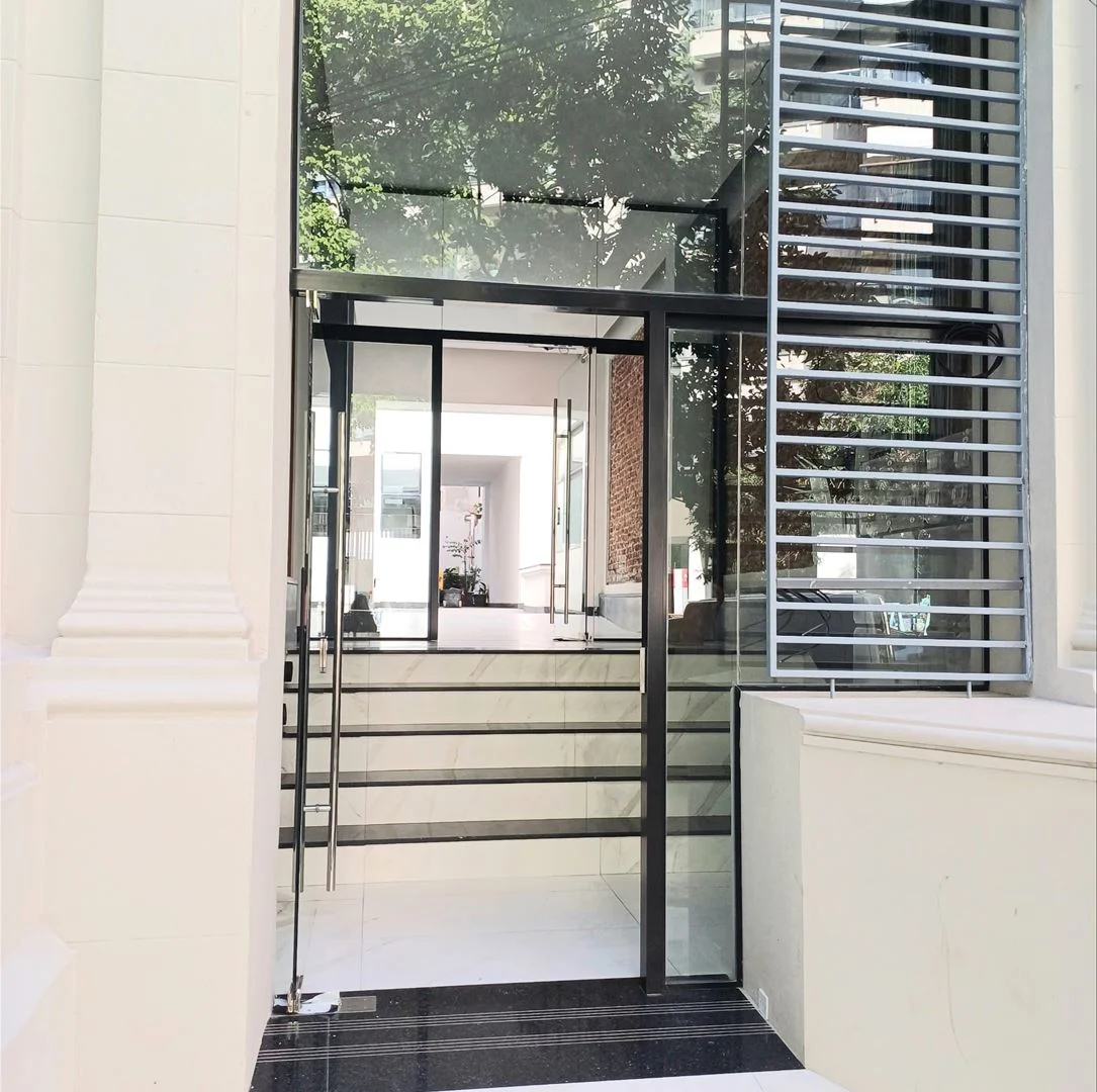 EN EL FRENTE DE UN DEDIFICIO RECICLADO CON EXCELENTE CALIDAD CONSTRUCTIVA Y MUY BUEN GUSTO