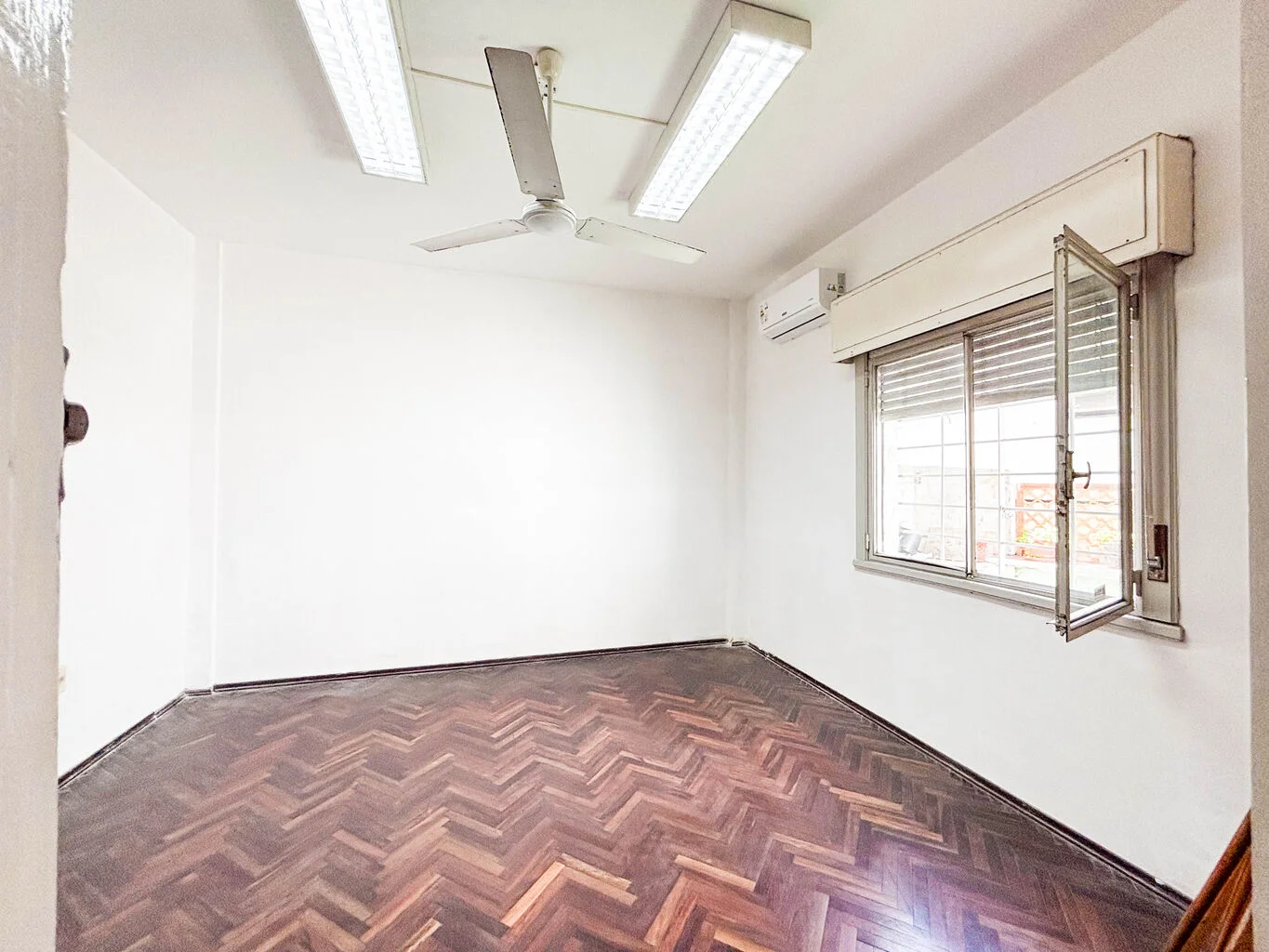 Al fondo, otra habitación con placar, pisos de parqué y ventana hacia el patio Esto lo covierte en una opción ideal de local con vivienda, oficina o depósito.