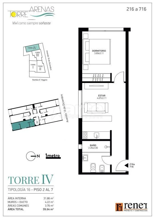 Gran emprendimiento sobre la Rambla de Malvín con una calidad constructiva destacada y espectaculares amenities se encuentra Torre Arenas. El edificio se distribuye en torres independientes con unidades de 1 ambiente, 1, 2 y 3 dormitorios con distintas tipologías y orientaciones. Esta unidad de un dormitorio al contra frente cuenta con living con cocina integrada, dormitorio con placard y baño con luz natural.