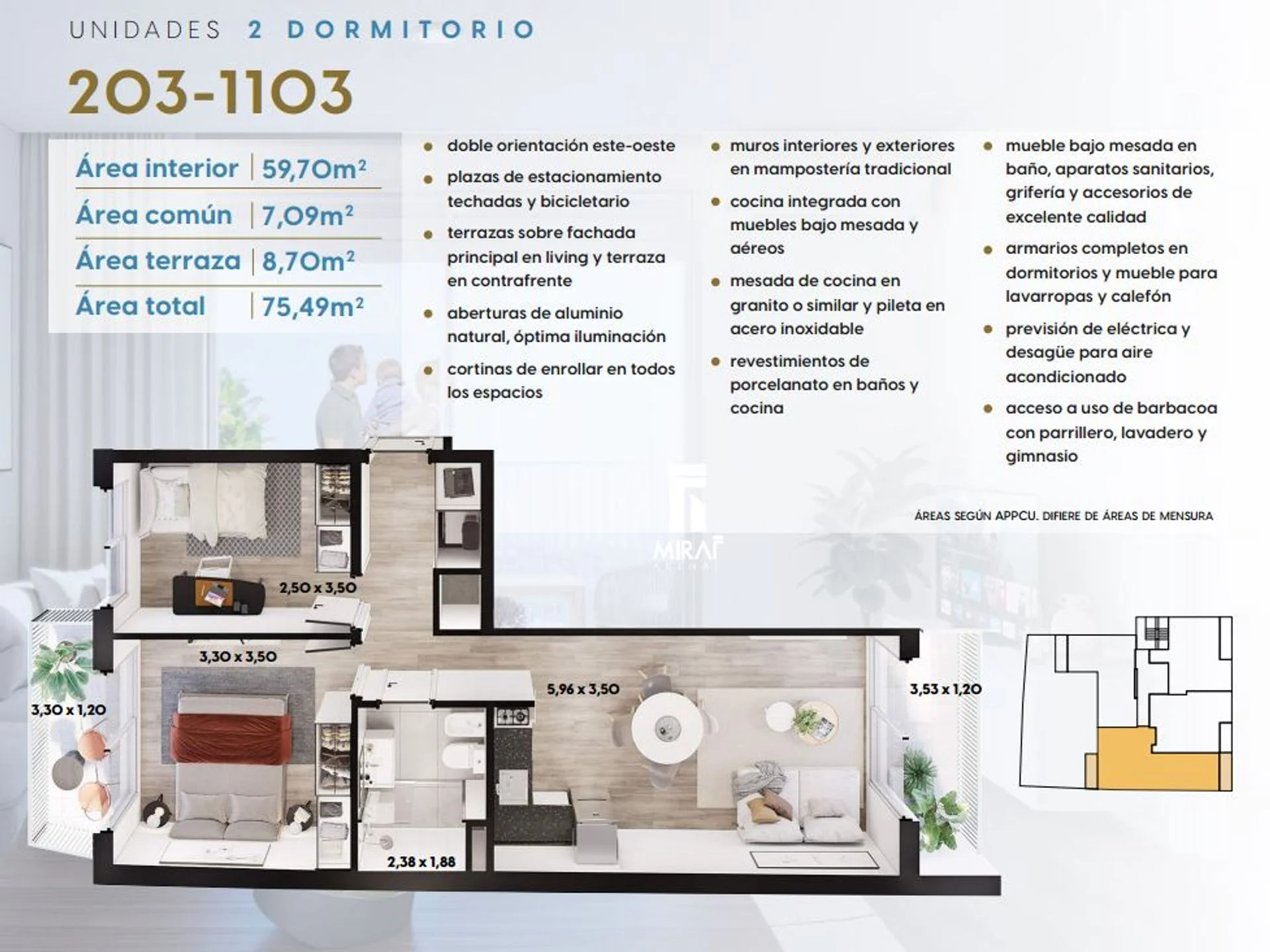 Corredor Responsable: - Contacto: Valeria Cruz Estrena Ya! Arenal Grande casi Brandsen, a pasos de grandes avenidas como 18 de Julio y Rivera. Estrena Marzo 2026 3 er piso al frente, Cuenta con 2 dormitorios. Living con terraza al frente y cocina conectada, 2 dormitrorios con placares y terraza posterios tipo lavadero. construcción tradicional. Orientación Este/ Oeste. Conexiones incluídas en el precio. Comodidades y amenities Gimnasio Lavandería Salon de usos múltiples Guardabicis Solárium Tenders El proyecto se realiza al amparo de la Ley 18.795, Ley de Vivienda Promovida (Vivienda Social) por lo que cuenta con: - Exoneración del ITP - Exoneración de IRAE/IRPF a las rentas generadas de los alquileres por 10 años - Exoneración del IP por 10 años ¡Excelente oportunidad de inversión, consultanos! Cada Oficina es de propiedad, gestión y desarrollo independiente La presente publicación describe las características esenciales del inmueble, debiéndose consultar al responsable de la operación por la eventual actualización de las medidas, descripciones arquitectónicas y funcionales, servicios, impuestos, precios y demás información, cuyos valores son aproximados.