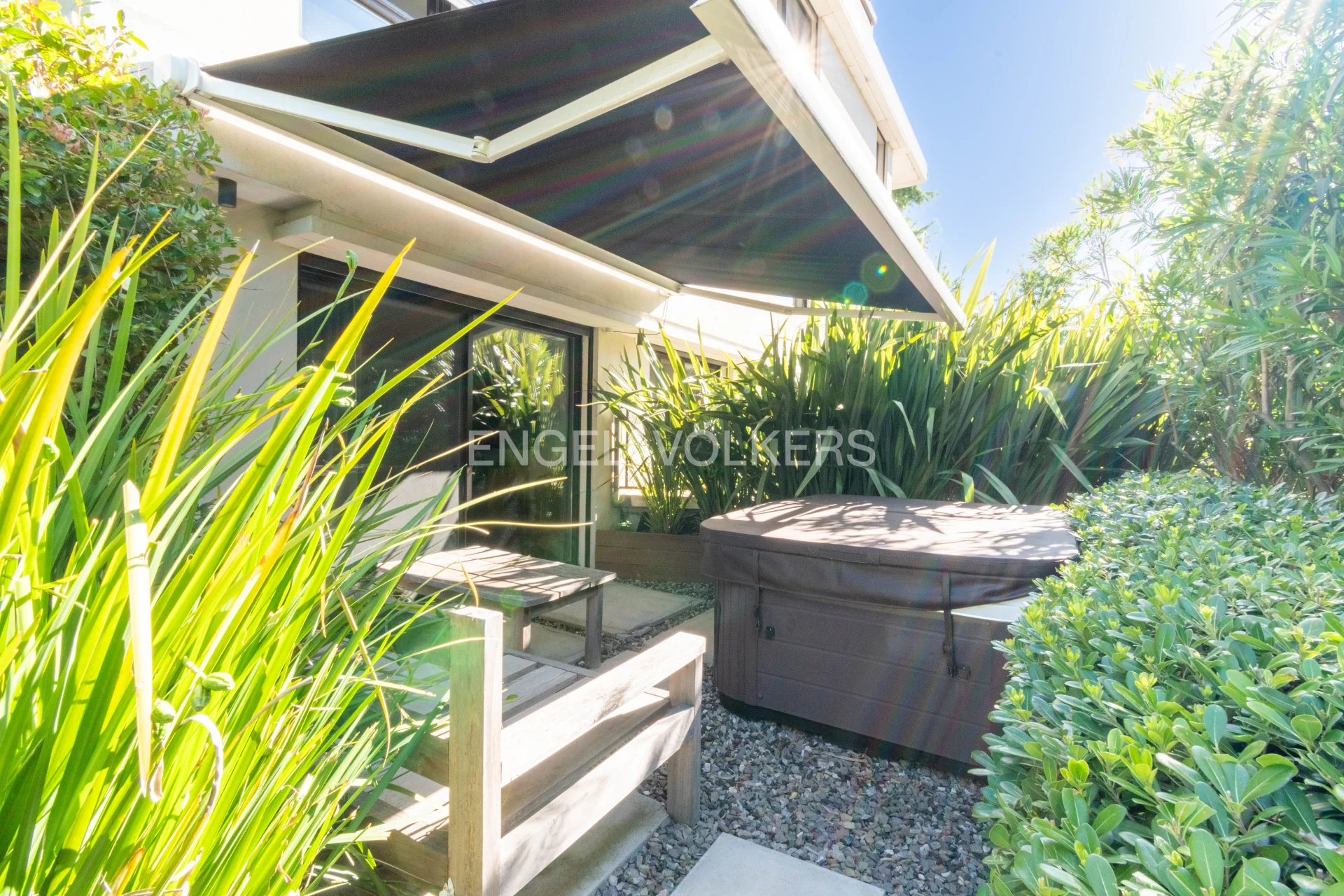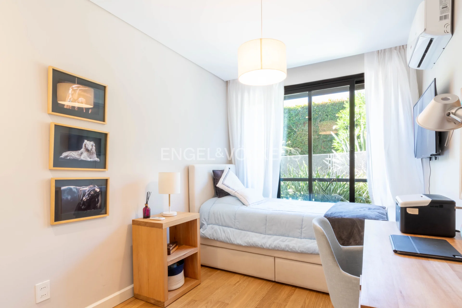 Engel & Völkers Montevideo presenta este único apartamento de 3 dormitorios en planta baja con jardín, ubicado en un excelente edificio en el corazón de Carrasco Sur, que combina confort, seguridad y accesibilidad. El apartamento dispone 136 m2 totales, siendo 96 m2 interiores y 40 m2 de disfrutables terrazas pergoladas y 120 m2 de jardín de uso exclusivo con entrada independiente. La propiedad cuenta con un amplio y luminoso living comedor integrado a la cocina. Los espacios interiores se integran de manera armónica a los exteriores, gracias a los amplios ventanales de excelente calidad y doble vidriado hermético. La cocina viene completamente equipada con horno, anafe y campana y se integra al parrillero. Área de lavadero con entrada de servicio. En el exterior, se encuentra una pérgola con parrillero y toldos totalmente automatizados, de excelente calidad. Disfrutable jardín de uso exclusivo con entrada independiente. Al acceder a la parte íntima de la casa, encontramos 3 dormitorios. Dos de ellos comparten un baño completo y el principal cuenta con vestidor y baño en suite. Además, la mastersuite cuenta con salida a una disfrutable terraza privada con jacuzzi y se conecta con el área de uso común, que cuenta con piscina y unos 300 m2 de disfrutable jardín y áreas verdes. La propiedad tiene aires acondicionados en todos los ambientes y cuenta con calefacción por losa radiante a gas. Tiene 2 cocheras techadas en subsuelo y 1 box. Gastos comunes aprox $ 28.800 mensuales Contribución inmobiliaria $120.000 Impuesto a primaria $9000 Al Edificio Plaza Lieja, lo integran 5 apartamentos de máxima calidad. El entorno natural de la zona que rodea al apartamento se disfruta a pleno a través de sus amplios ventanales y terrazas, que aseguran las mejores vistas. La calidad de construcción del edificio asegura terminaciones de máxima calidad, excelente distribución y funcionalidad en todos sus espacios, con amplios ambientes de madera natural, y excelente iluminación natural. Plaza Lieja cuenta con un sistema integral de seguridad de última generación tanto en el exterior como en el interior , que incluye iluminación perimetral, monitoreo por cámaras y servicio de alarma 24 hrs. No dude en consultarnos.