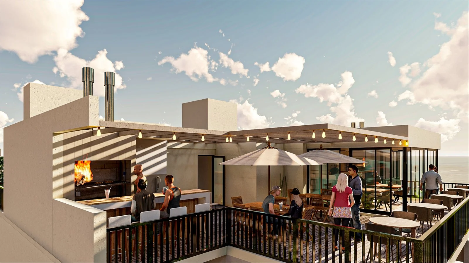 El edificio cuenta con playroom, barbacoa, solarium, gimnasio, cafetería, espacio co-work, SUM, y loundry.
