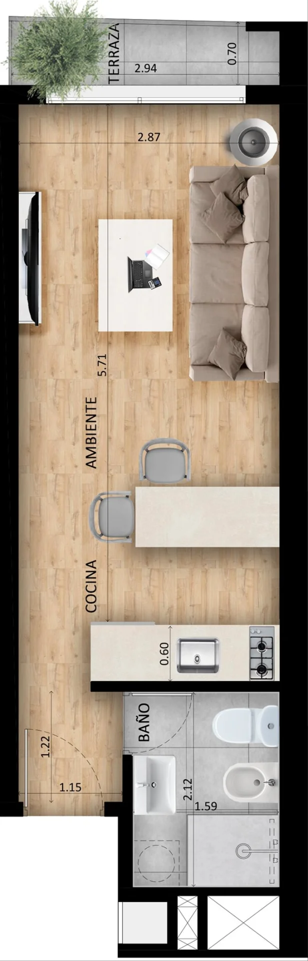 Monoambiente Al Frente A Estrenar En Cordon