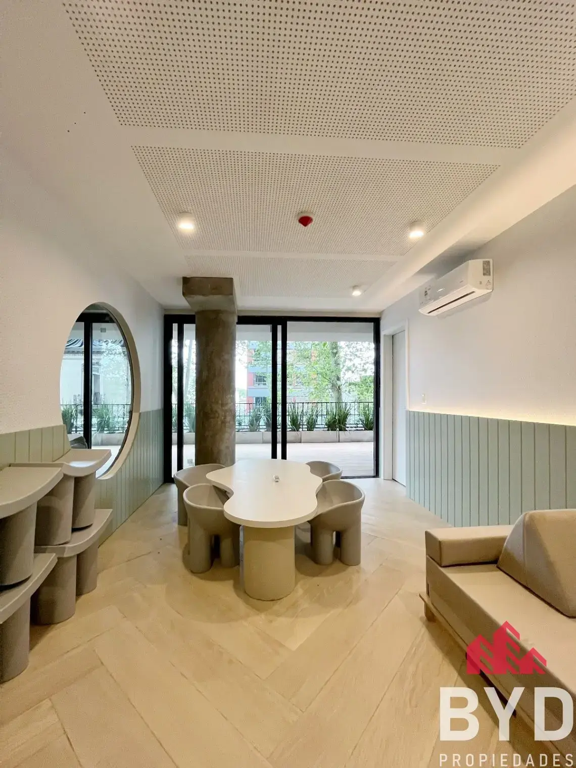 El edificio se distingue por sus amplias áreas comunes, que incluyen tres barbacoas de diferentes estilos, un espacio exterior con parrillero, una huerta orgánica para los amantes de la jardinería y un rincón de juegos. También dispone de un área de coworking, perfecta para estudiar o trabajar, y un salón de usos múltiples. La tecnología se hace presente con un acceso digital a las unidades mediante un portero inteligente y control de acceso a través de smartphone, además de la comunicación interna a través de pantallas en los espacios comunes.