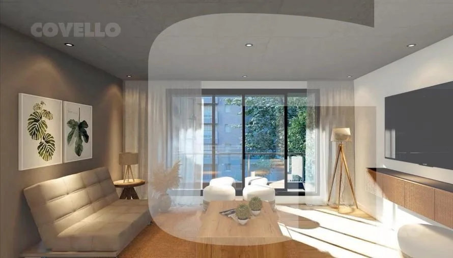 El apartamento integra estar-comedor con cocina incorporada, espacio para placard, baño completo y terraza privada, generando ambientes luminosos y bien ventilados.