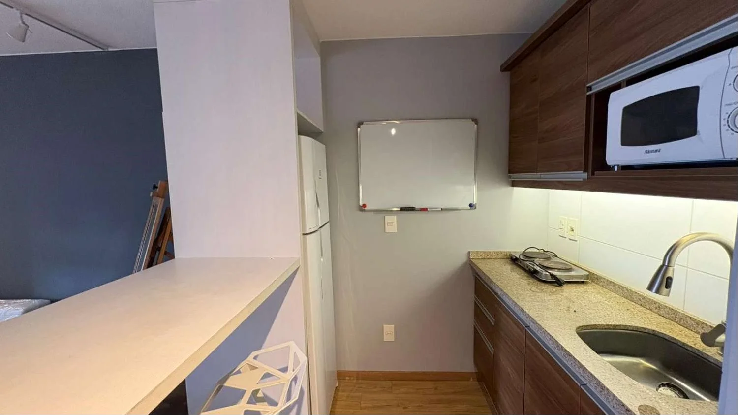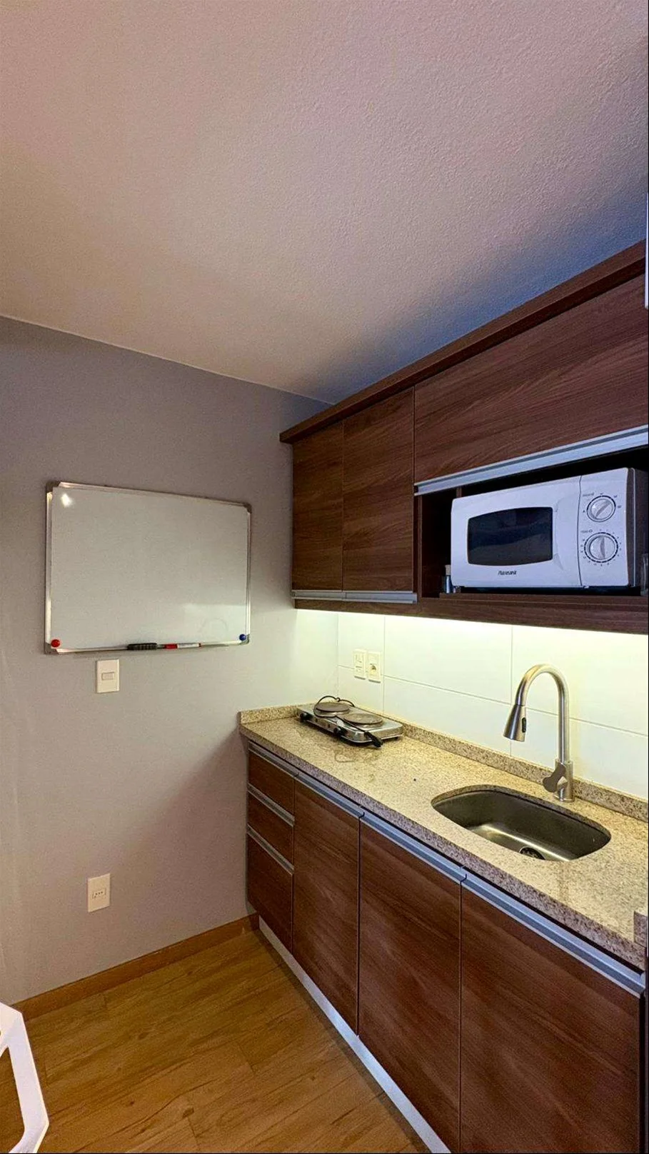 Cuenta con hall de entrada y un gran ambiente donde podemos encontrar un cómodo living con cocina integrada , muy cómoda, dormitorio con placard con ventanales hacia una terraza muy soleada. Baño completo .