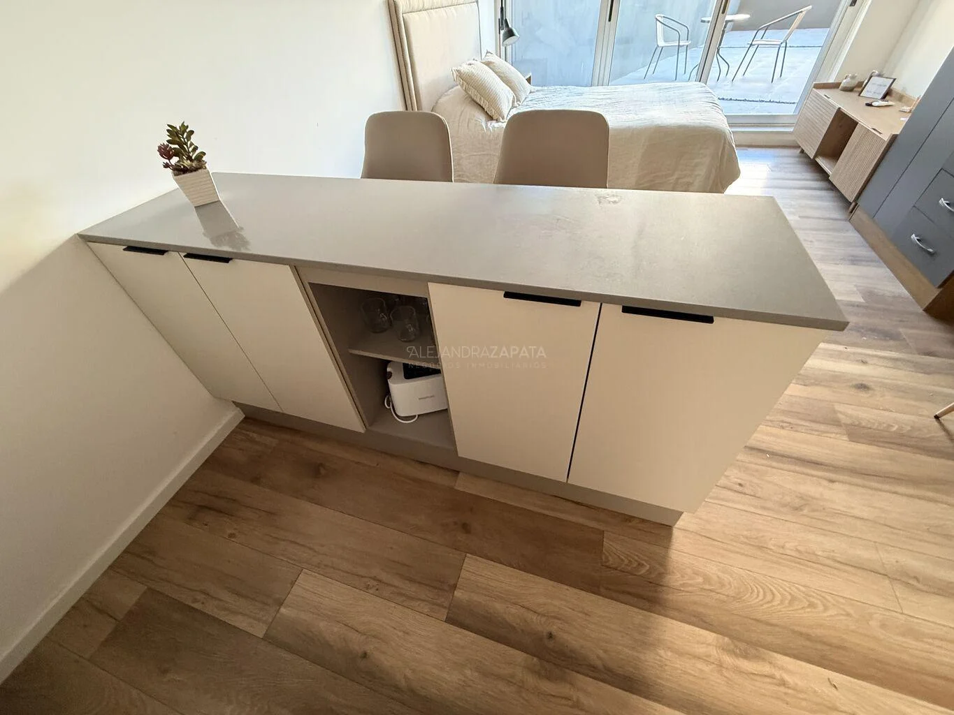 HAll de recibo, baño completo super amplio, cocina integrada muy cómoda y con buena profusión de placares.