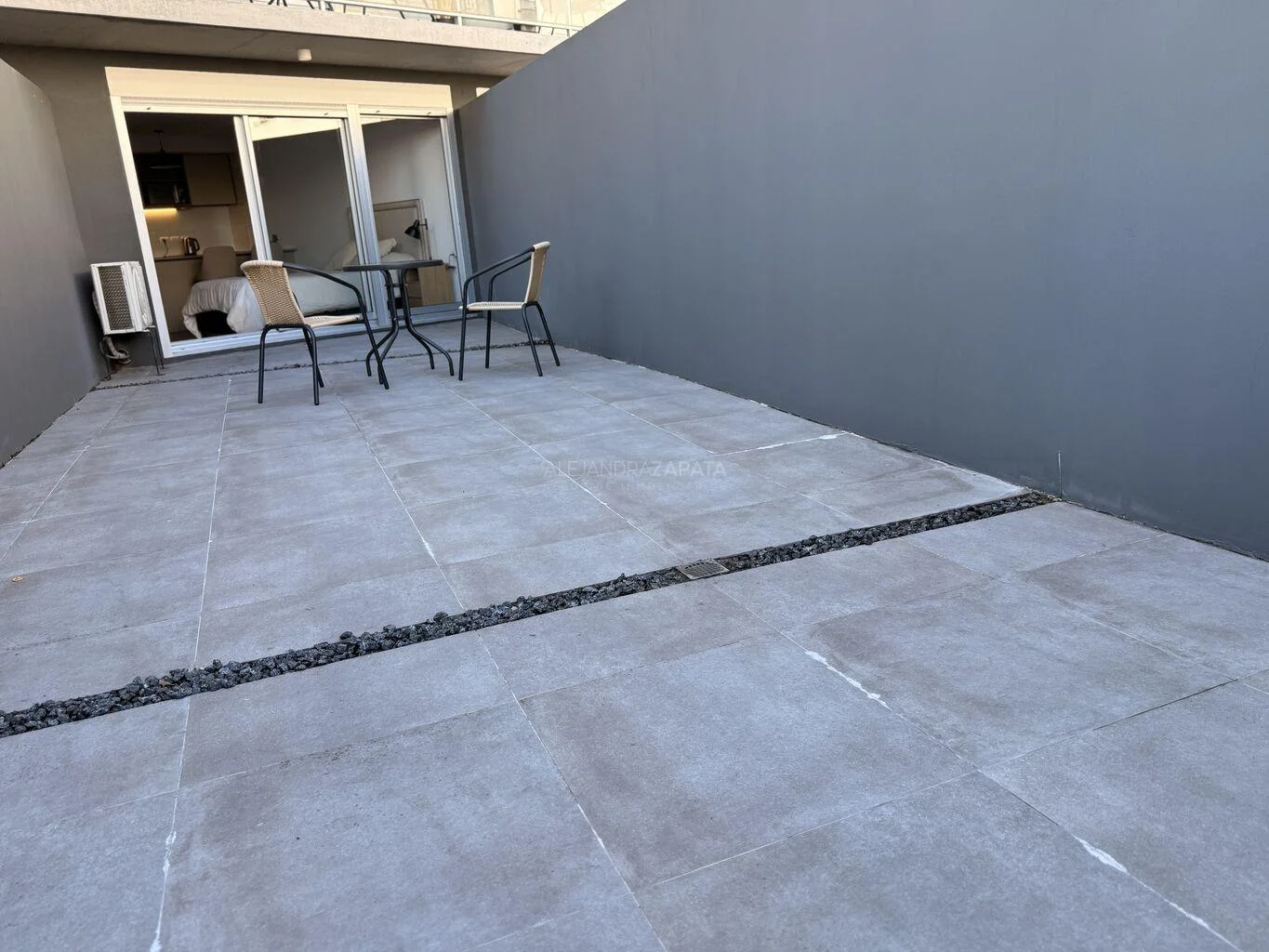 El apartamento cuenta con 30 m.c. construidos y un gran patio de 30 m.c. de uso exclusivo.