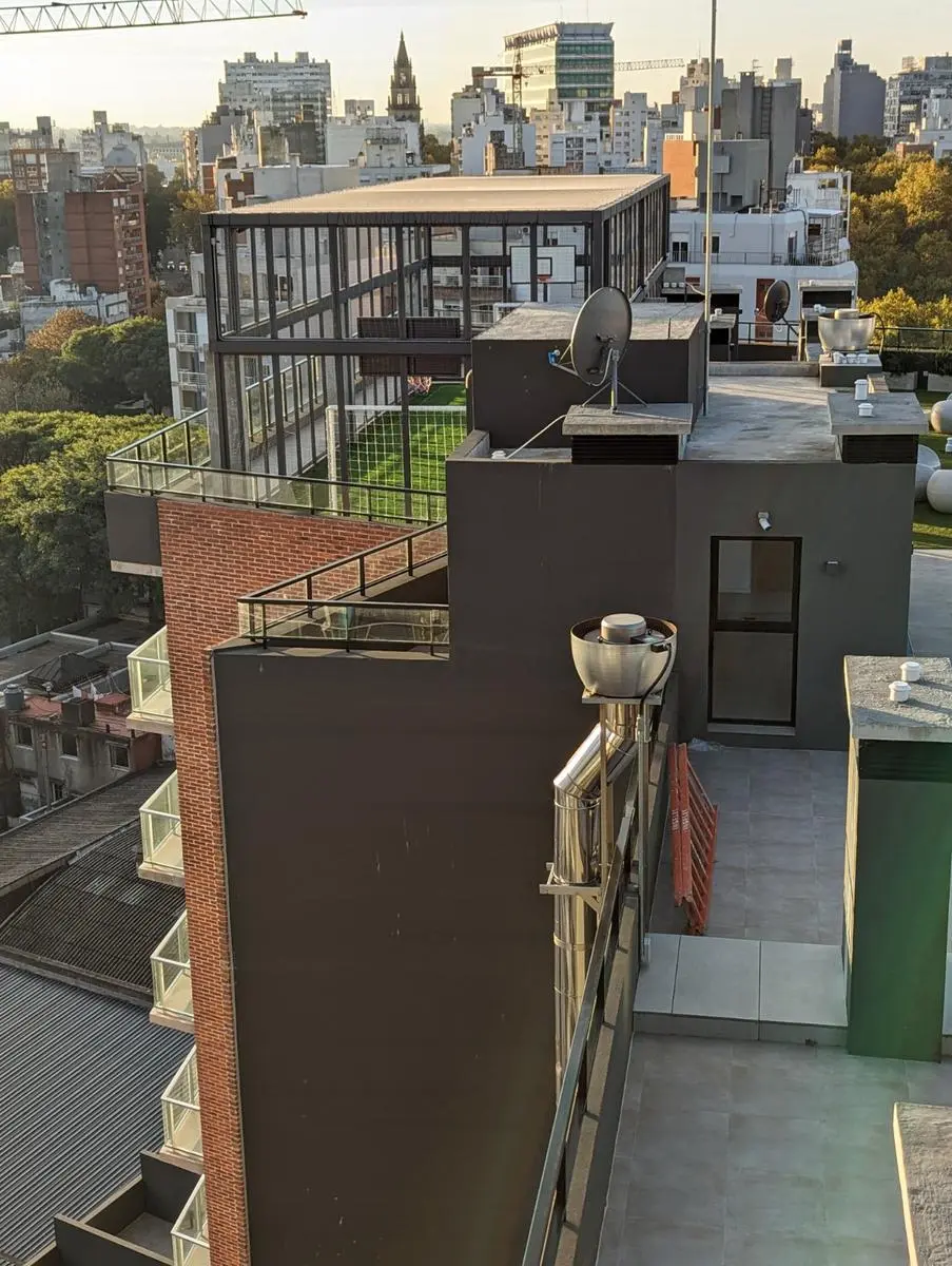 El monoambiente en sí destaca por su diseño funcional y contemporáneo, con una enorme terraza que ofrece vistas panorámicas y espacios para disfrutar del aire libre.