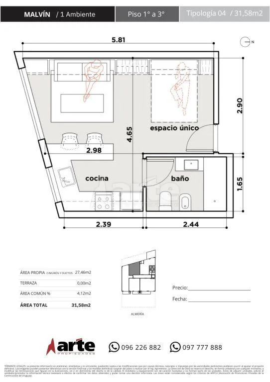 Hermoso monoambiente a metros del mar y de Concepción del Uruguay. Muy luminoso con amplia cocina integrada con mesada en U, equipada con horno, anafe y placares aéreos. Edificio de moderno diseño con excelente calidad constructiva, muros de mampostería tradicional, preinstalación de aire acondicionado, aberturas con DVH. Además contará con cerramiento perimetral, previsión de CCTV, laundry, área de tender, parrillero abierto y bicicleteros.