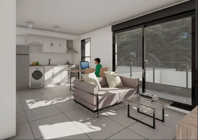 · 56 apartamentos distribuidos en monoambientes, 1 y 2 dormitorios.