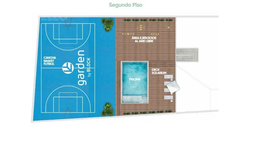 Contará con amenities de calidad como: piscina, espacio relax, gimnasio in -out equipado, cancha de futbol, cancha básquet, barbacoa equipada, terraza 360° con living de exterior, espacio cowork, sala de lectura, laundry de lavado y secado con app, racks de soporte para bicis, cargadores para autos eléctricos y ventanas doble vidrio hermético.