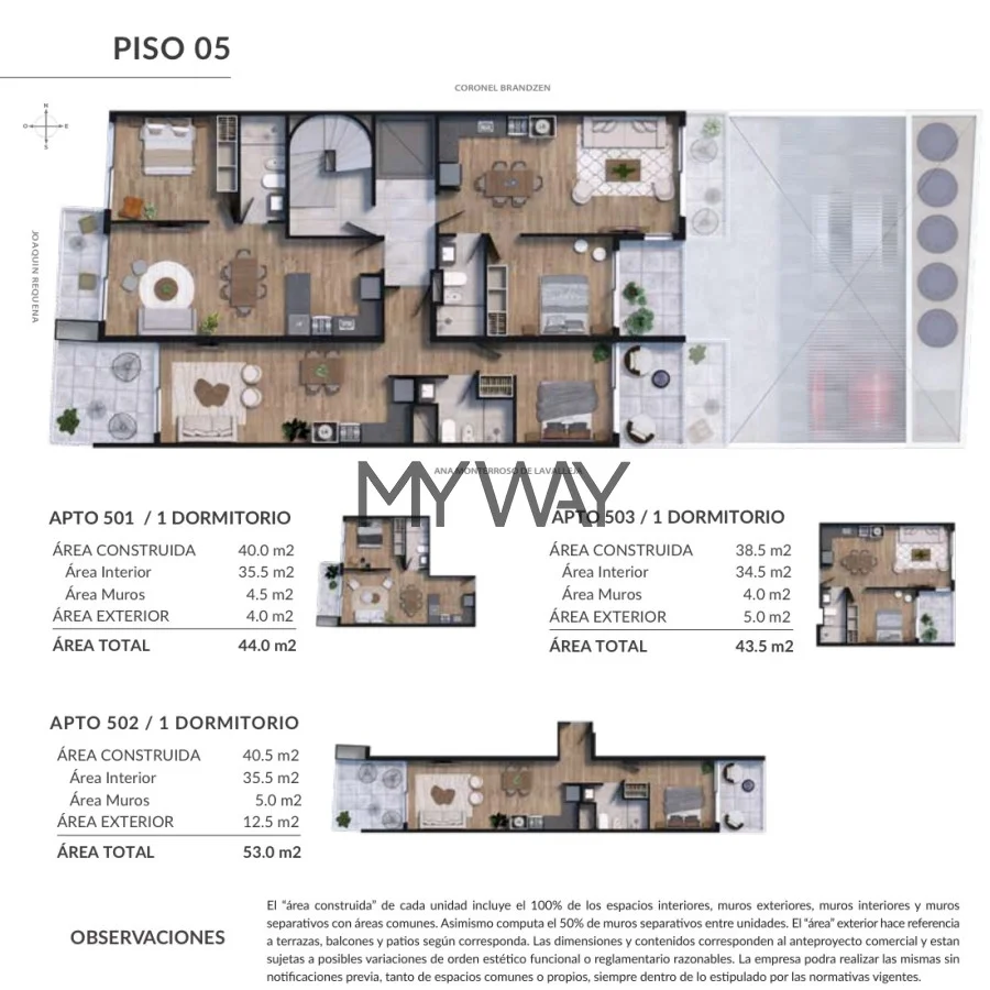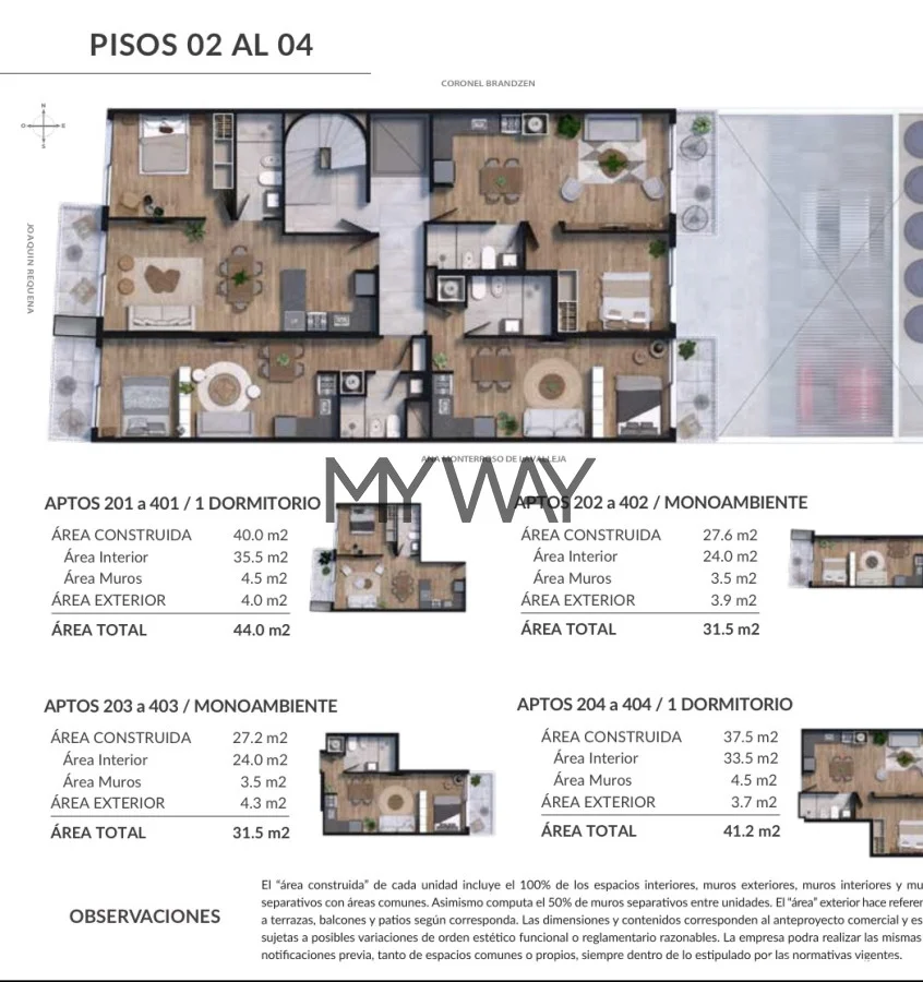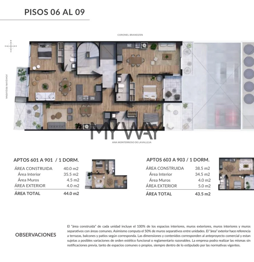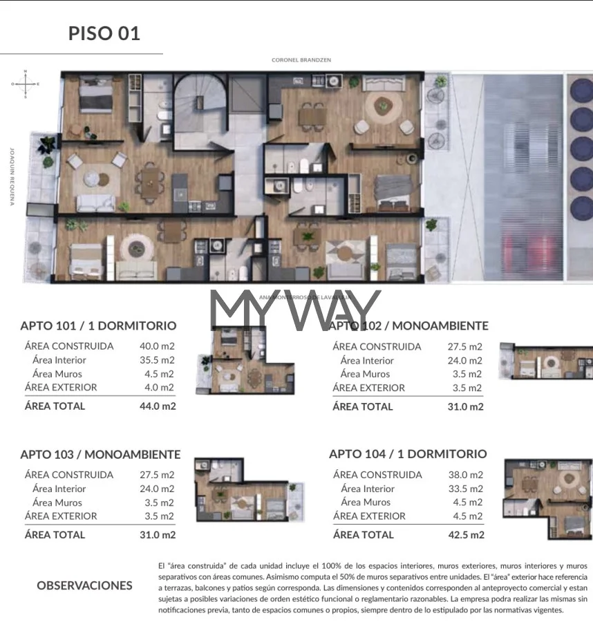 Las unidades se entregaran con: Placares bajo mesadas según planos y aéreos (alacenas) con terminación melamínico y barra en cocinas, Placares yo vestidores en dormitorios (según corresponda la unidad), y previsiones de Aire Acondicionado, calefón y lavarropas tanto en el interior como fuera de la unidad.