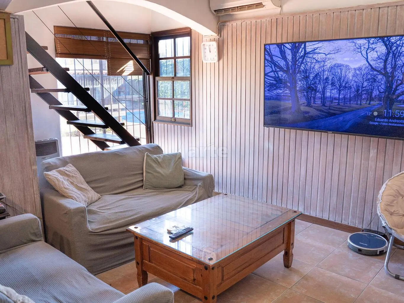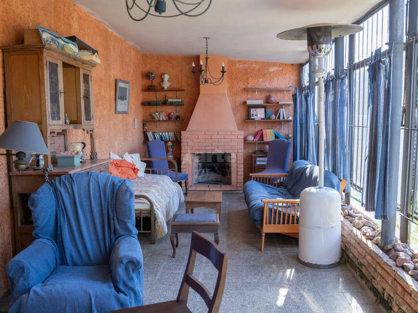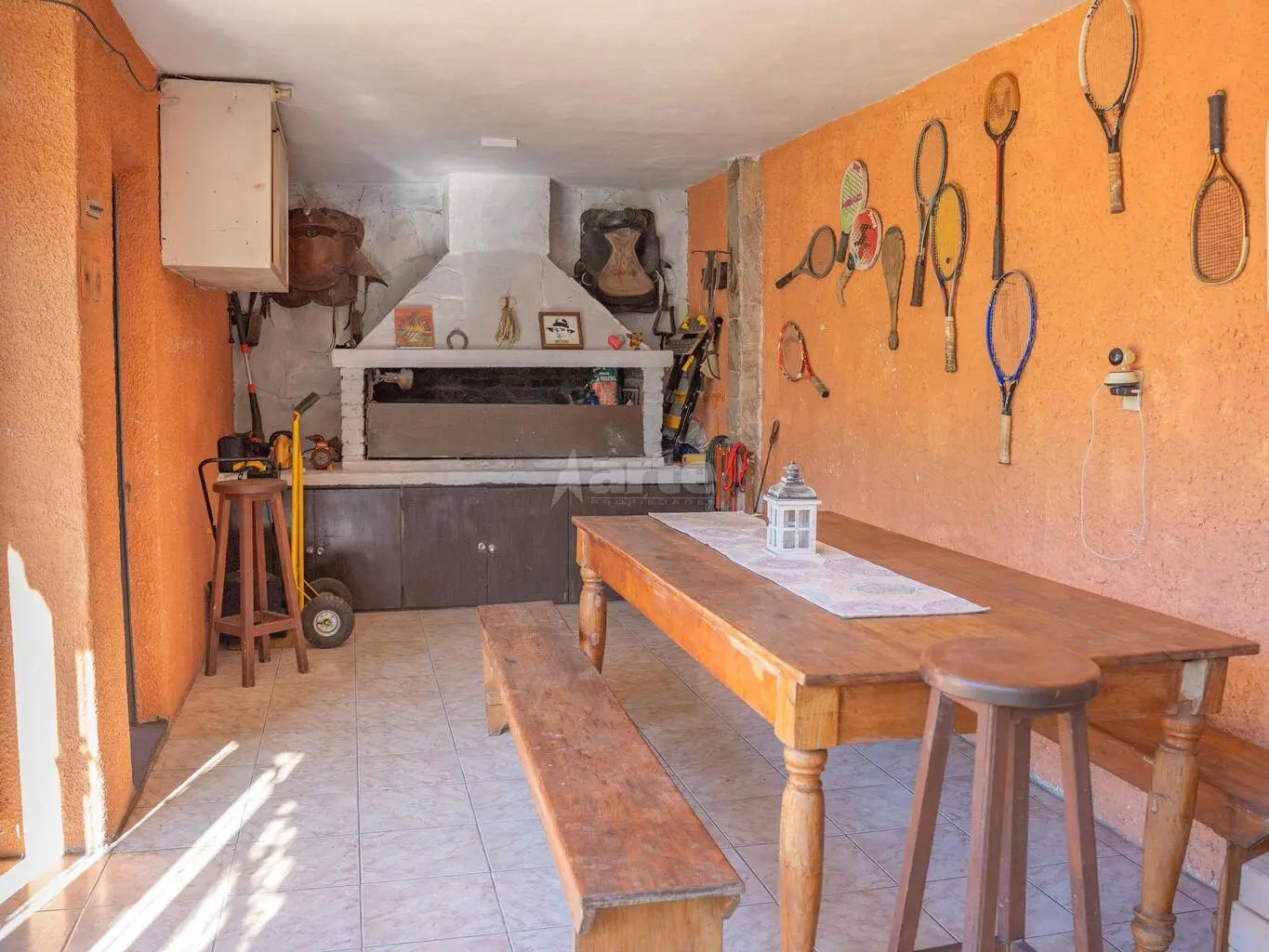 Al fondo una gran barbacoa cerrada con parrillero y estar con estufa a leña, dormitorio con baño de servicio.