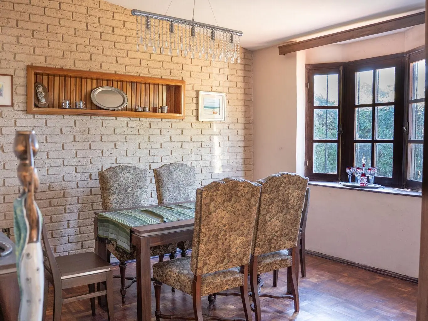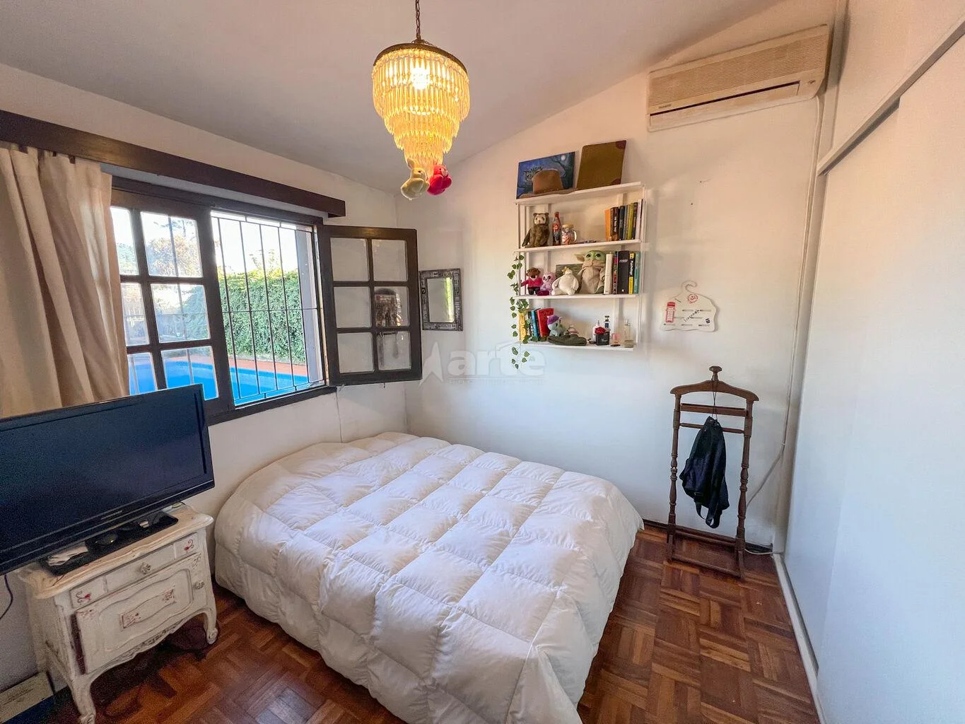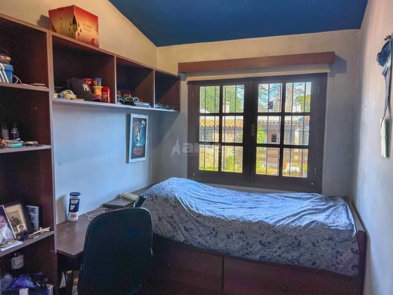 Al fondo una gran barbacoa cerrada con parrillero y estar con estufa a leña, dormitorio con baño de servicio.