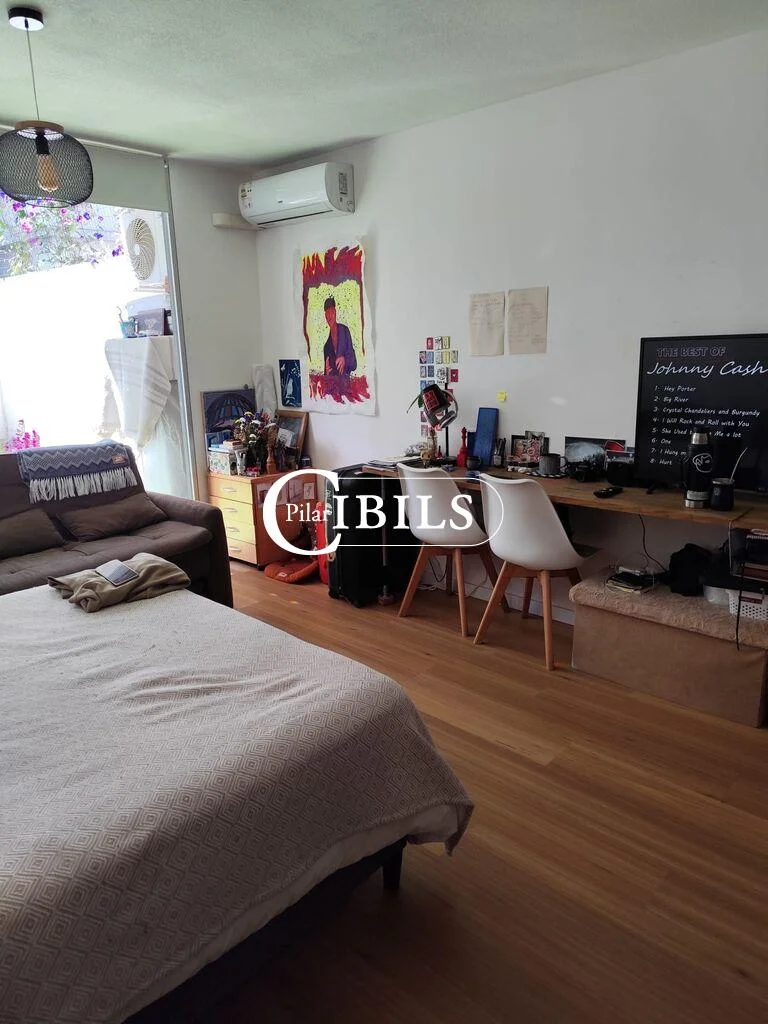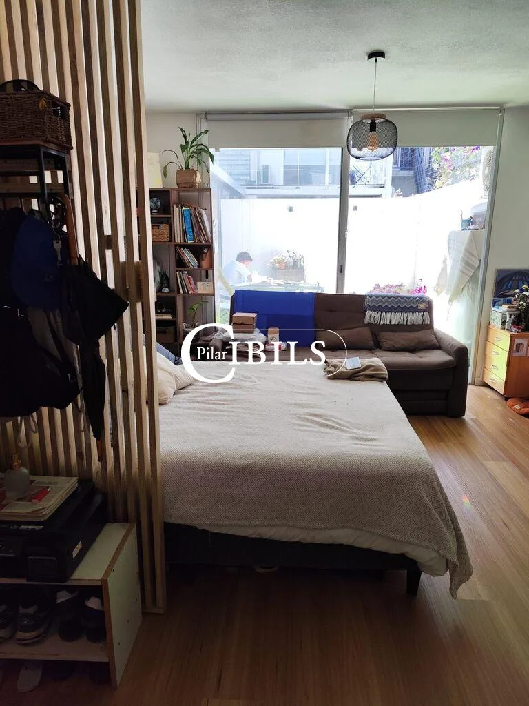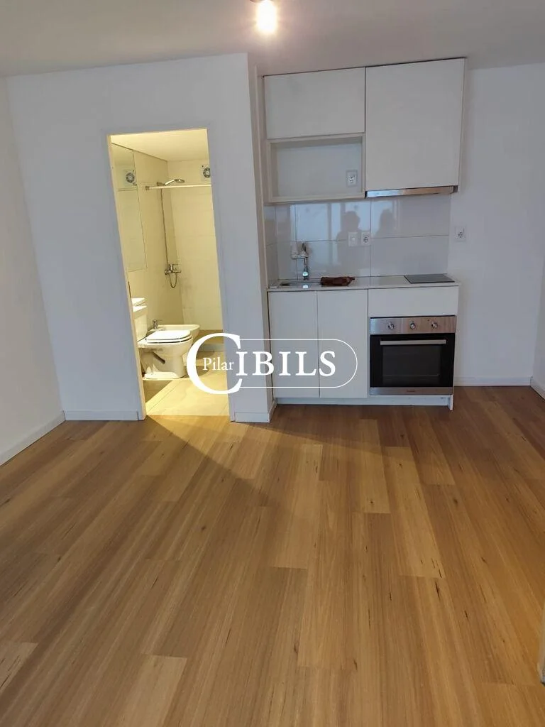 Es un moderno monoambiente, cuenta con cocina con anafe, horno empotrado y buen mobiliario bajo y sobre mesada. También tiene un baño completo y grande, con placard para lavarropa y calefón. Espacio para cama matrimonial, sillón y escritorio.