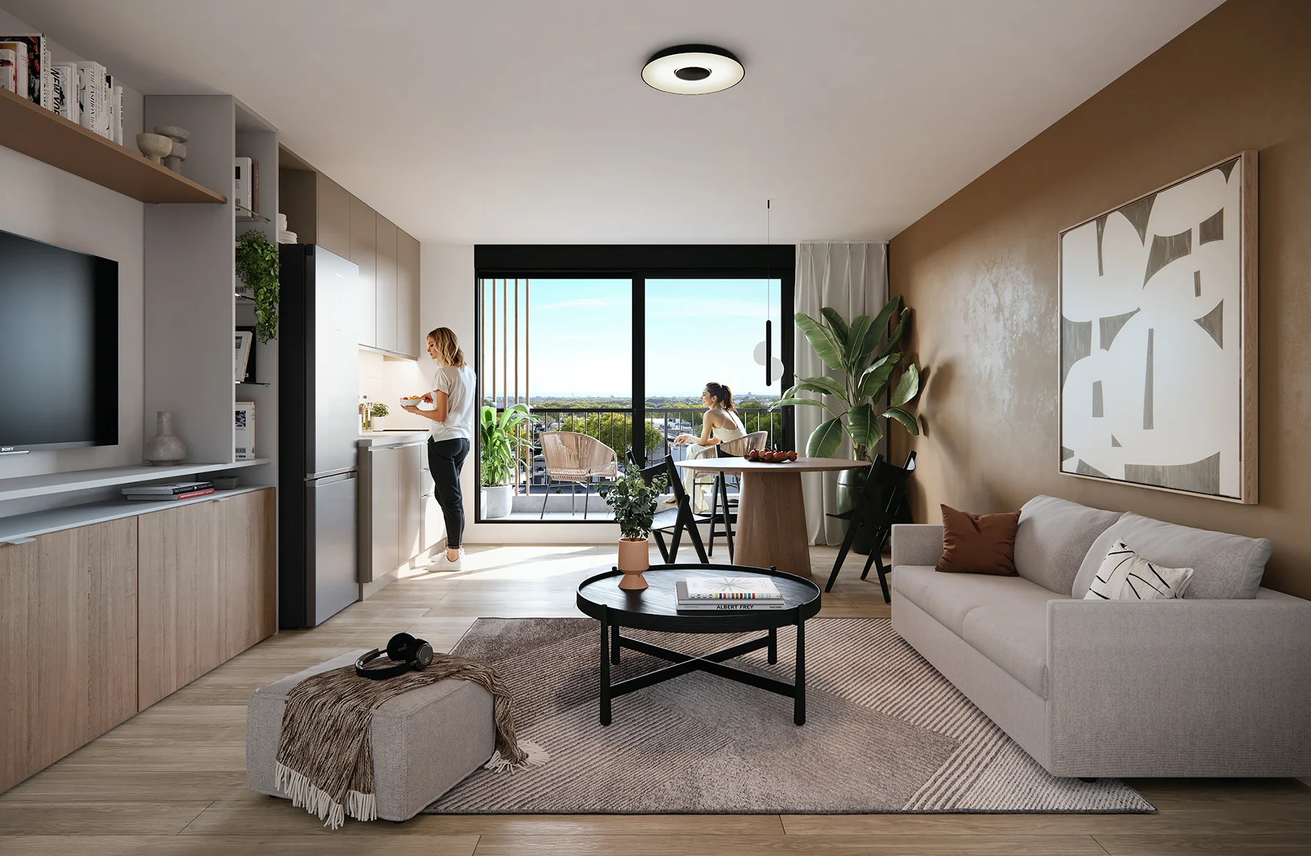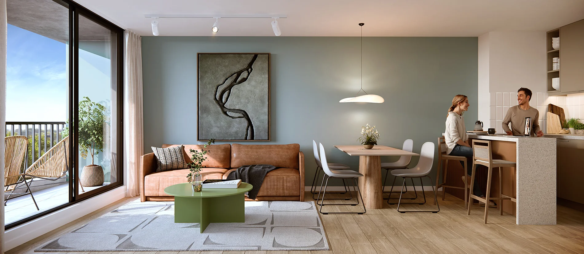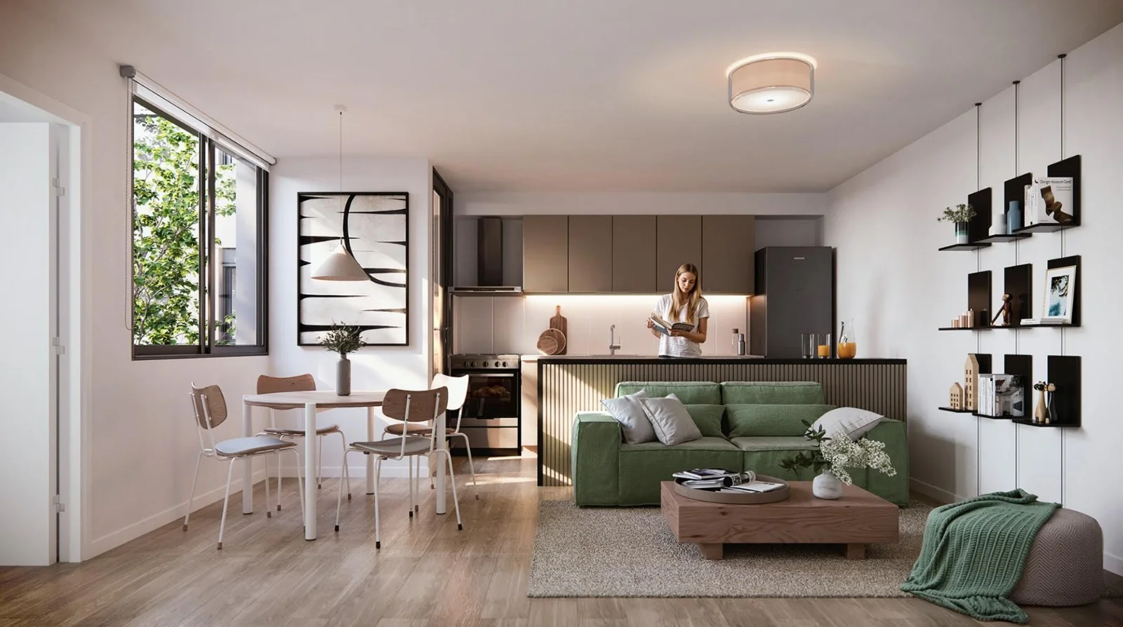 El programa residencial ofrece una amplia variedad de tipologías: monoambientes, unidades de 1, 2 y 3 dormitorios, pensadas para adaptarse a las distintas etapas y estilos de vida.