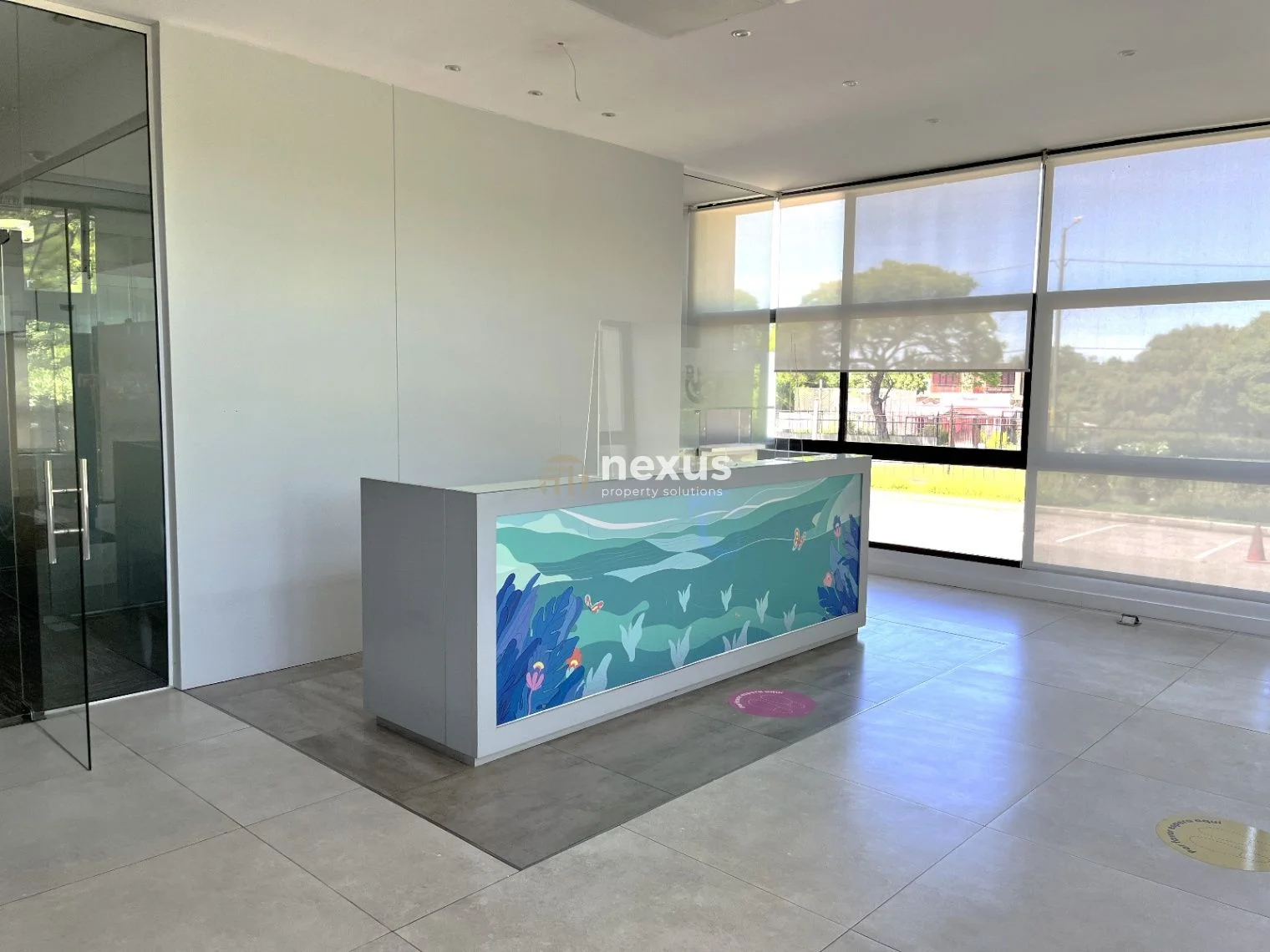 La propiedad también incluye un hermoso jardín y una pérgola que añaden un toque de naturaleza al entorno laboral. Con más de 50 espacios de parking y una rampa para silla de ruedas, se asegura un fácil acceso y movilidad dentro del predio. La garita de seguridad en la entrada proporciona tranquilidad y protección, lo que la convierte en una opción ideal para empresas que buscan un entorno seguro y profesional.