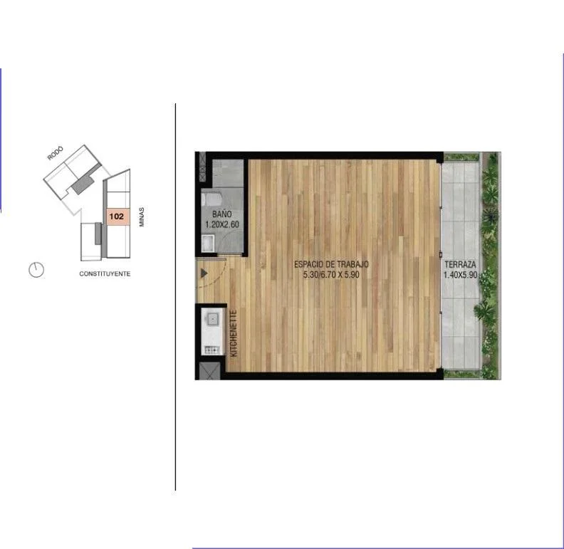 Piso 1 al frente sobre calle Minas con orientación este.Piso 1.