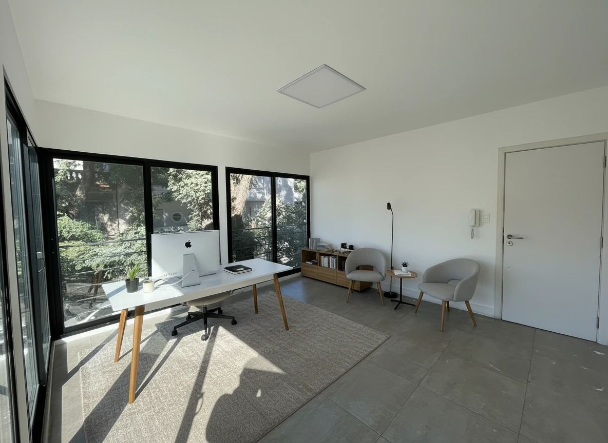 Alquiler de oficinas en moderno edificio. Disponible desde 1 de Abril 2026 Pleno punta carretas a metros de Br Artigas. Sala de reuniones de uso común completamente equipada. Cocina de uso común. 4 baños. Cámaras de vigilancia y alarma. Se entregan con luminarias led, aires acondicionados y cortinas.