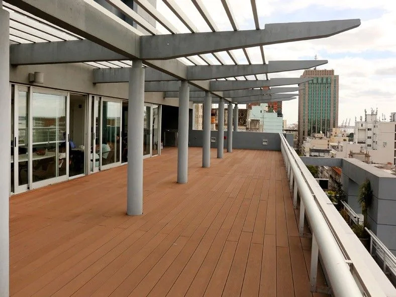 El edificio cuenta con un amplio espacio de uso común en el último piso que se usa como comedor o sala de presentaciones.