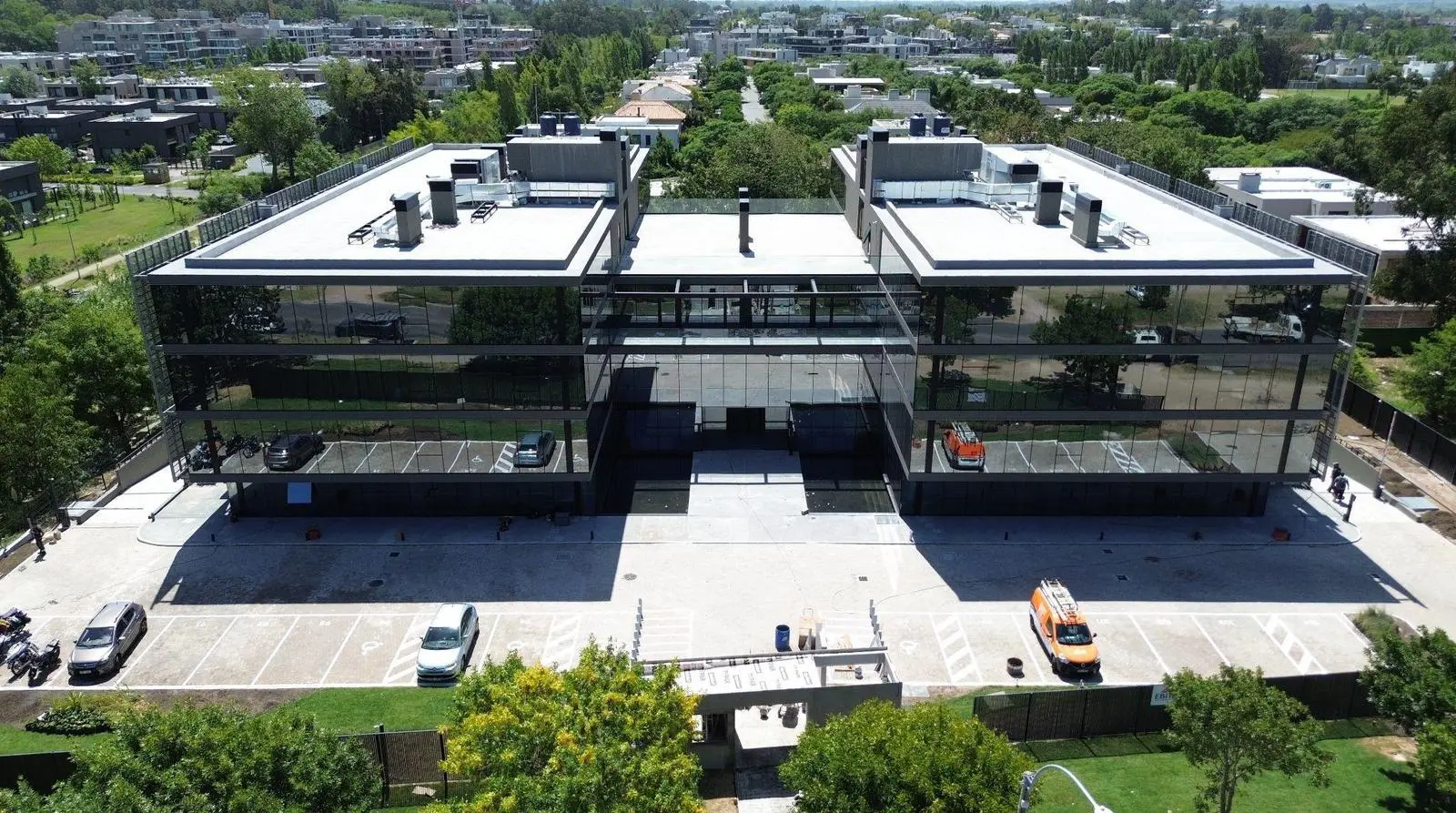 El edificio se distribuye en dos bloques, compuesto por planta baja y tres pisos, con subsuelo destinado a estacionamientos. Contará con un hall de doble altura, recepción, una cafetería, terraza verde de uso común y un bistró de uso común en un bloque externo.