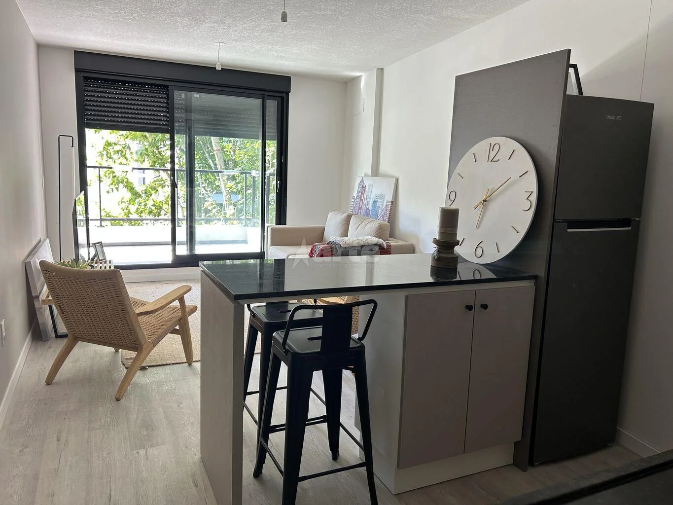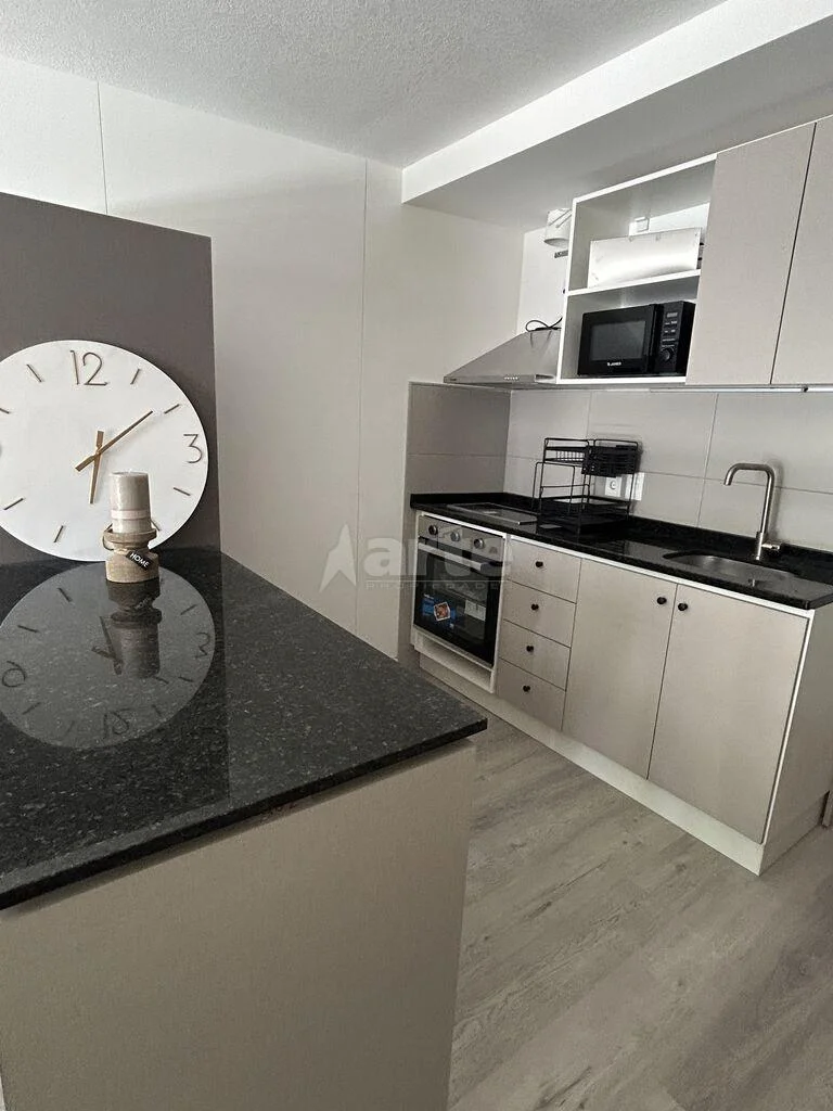 Muy lindo apartamento al frente con amplia terraza, living comedor con cocina integrada, doble mesada de granito y muy buenos placares: se entrega con campana , anafe y horno empotrado.