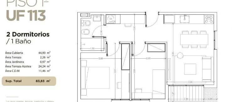 $ ~6,850,000 / + $ 5,000 gastos comunes / U$S 2,374/m2