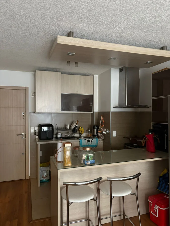 Con una orientación oeste, disfrutarás de luminosos atardeceres desde tu propio hogar. La unidad cuenta con una cocina moderna equipada con barra, perfecta para compartir momentos inolvidables con amigos y familiares. El amplio living comedor se convierte en el espacio ideal para relajarte después de un largo día.