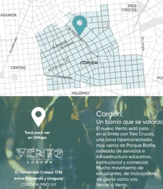 VENTO CORDÓN está ubicado en la calle Fernandez Crespo esquina Paysandú.