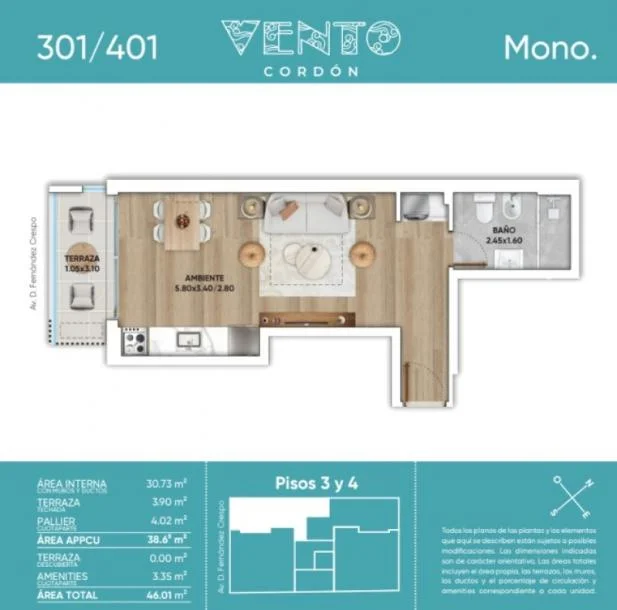 El apartamento 301 ofrece mucha luz y ventilación natural.