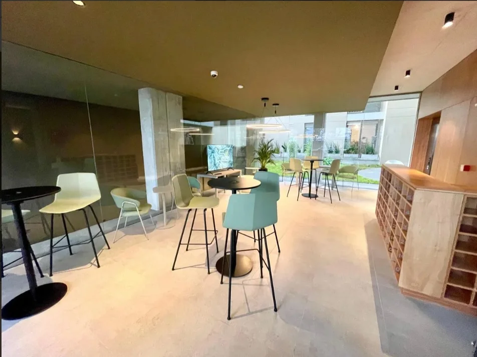El edificio está conformado por dos bloques de seis pisos cada uno. Ofrece barbacoa con parrillero, solárium, spa, parking para bicicletas, cargadores para autos eléctricos, espacio de co-work, lavadero, huerta orgánica y jardines