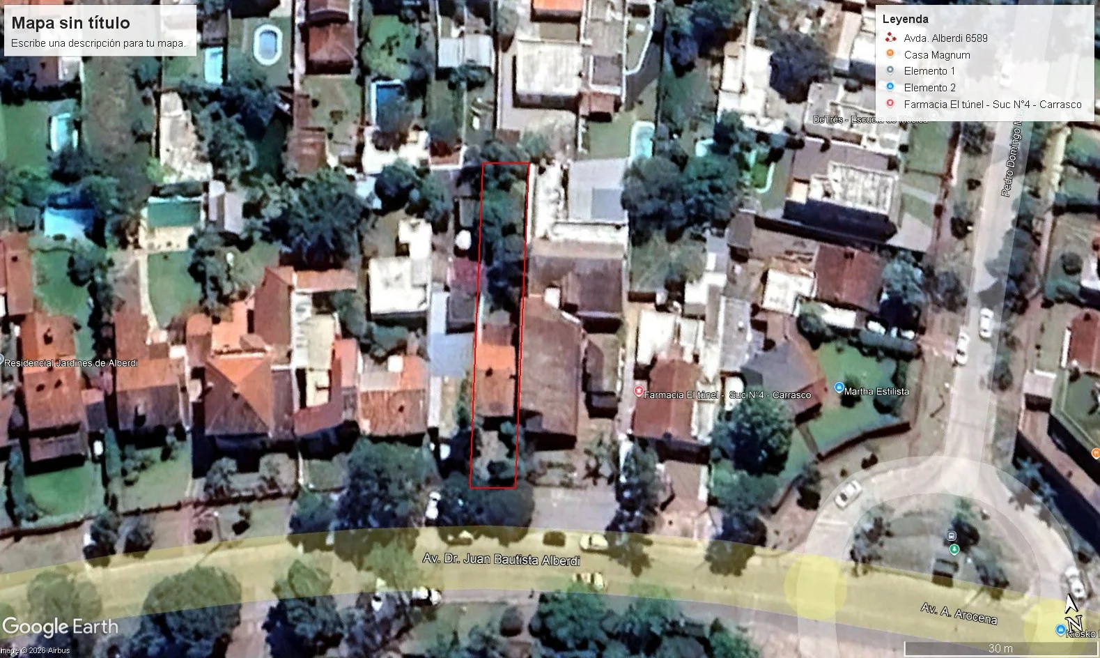 Una perla en el centro de Carrasco. Terreno con mejoras en venta sobre la Avda. Alberdi entre Murillo y Jamaica. Zona comercial y de muy alto tránsito.