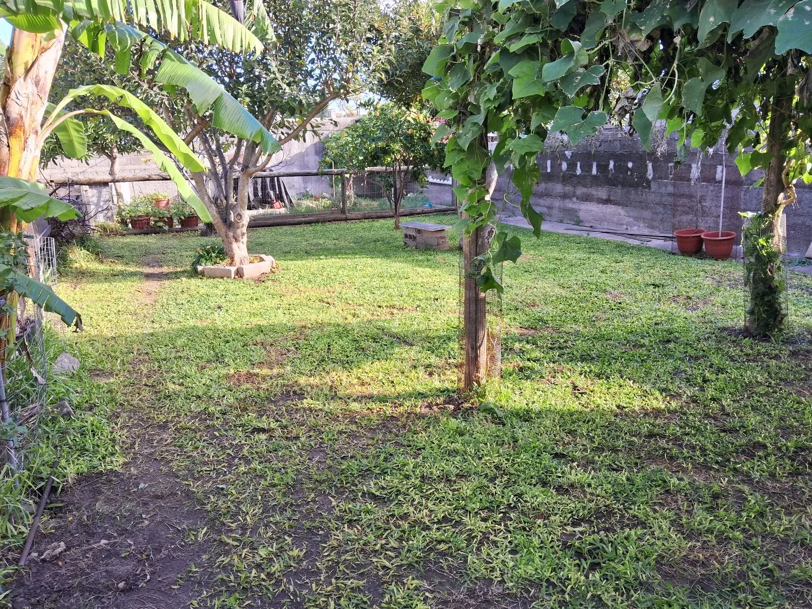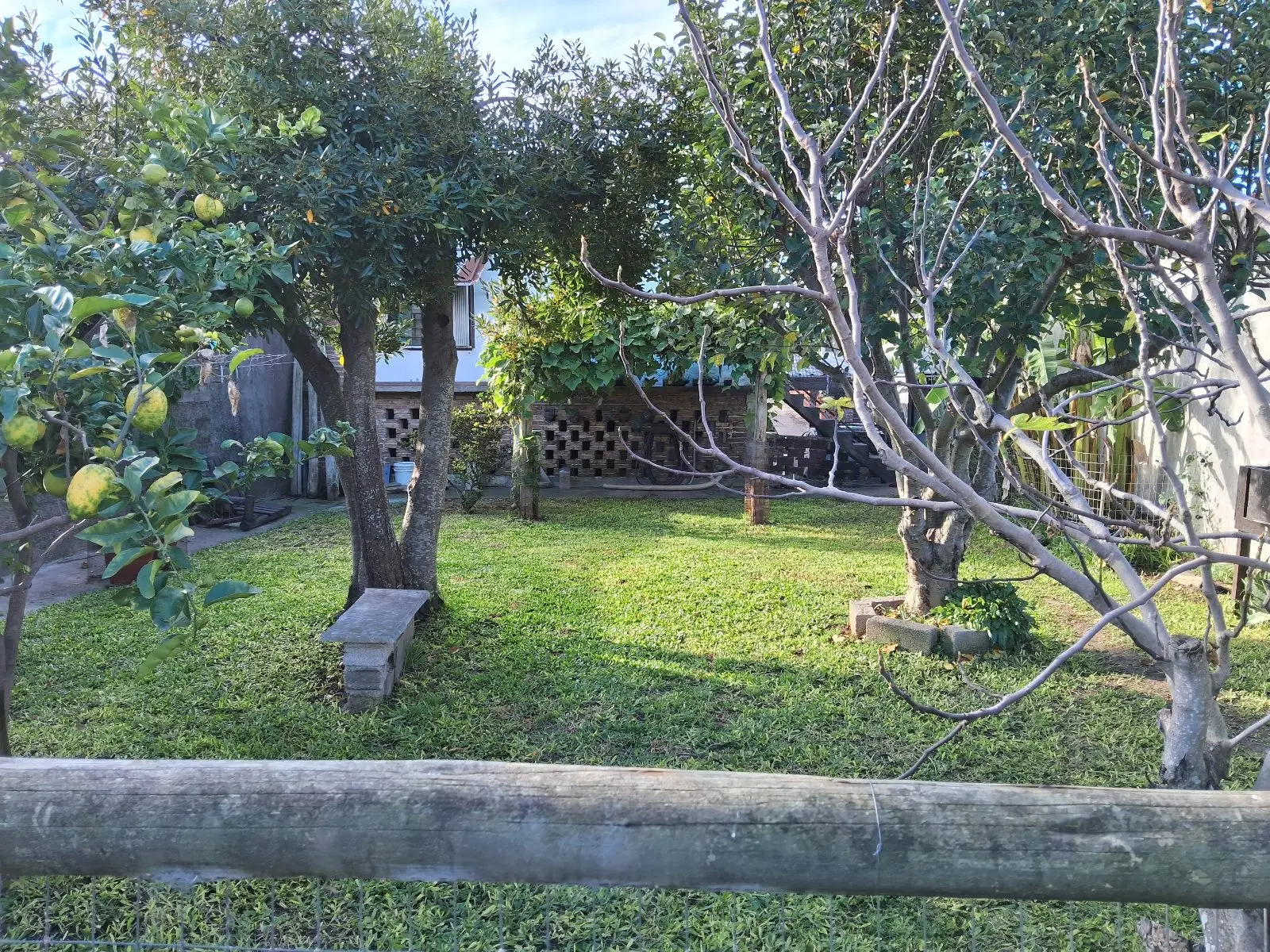 Acceso lateral vehicular con 2 cocheras. Terreno al fondo con muros perimetrales