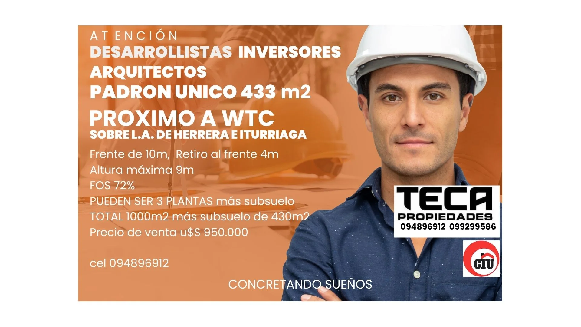 Padrón Único a la venta de 433 m2. Sobre Luis Alberto de Herrera e Iturriaga, todos los servicios cerca. Ideal para desarrollistas, constructores, arquitectos.