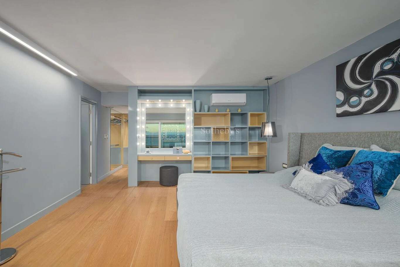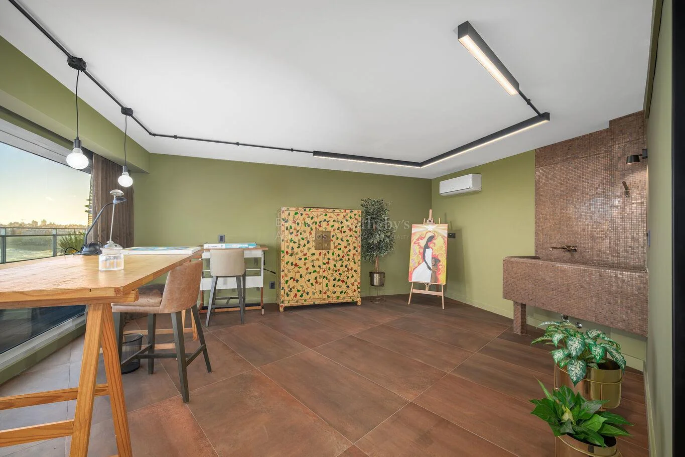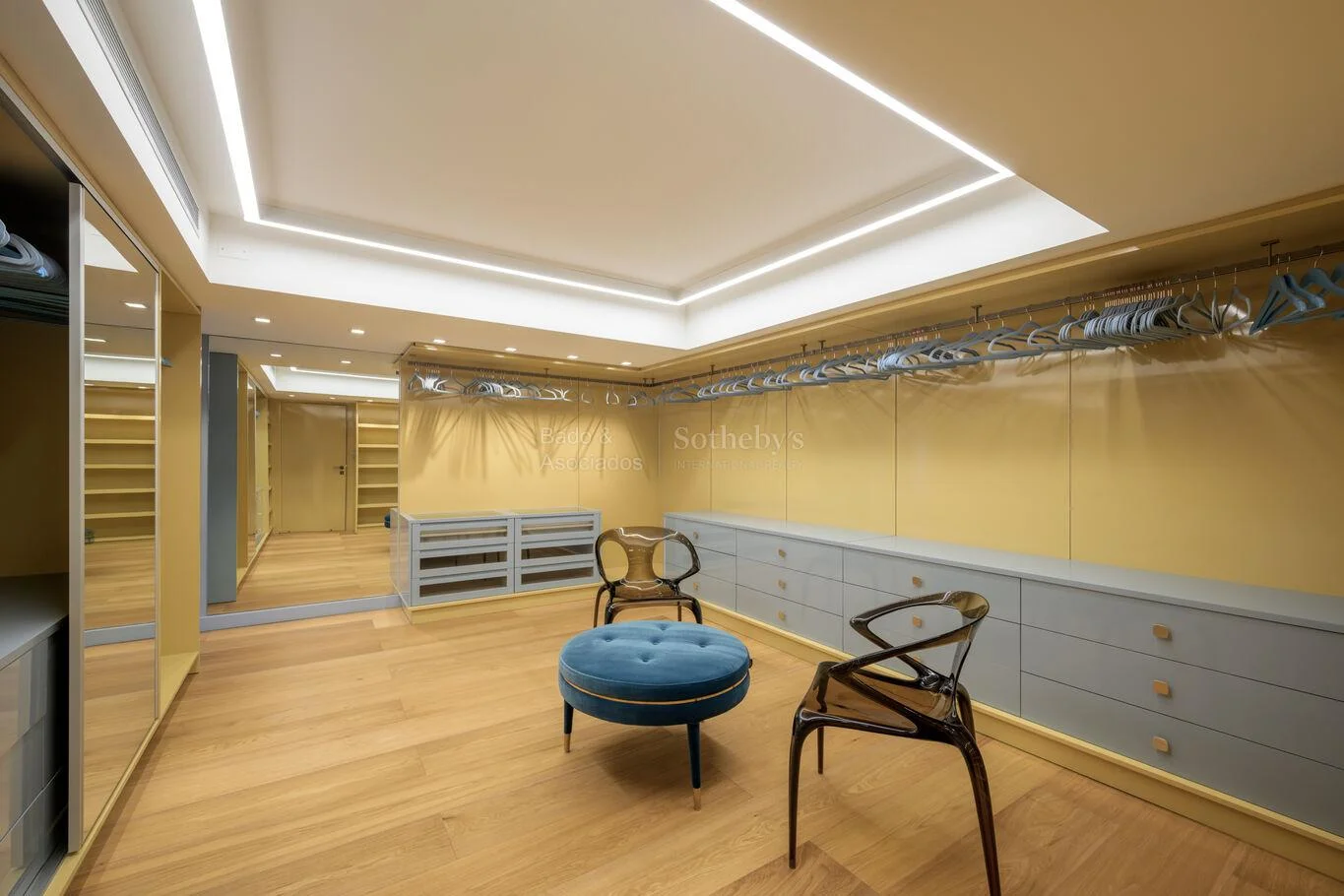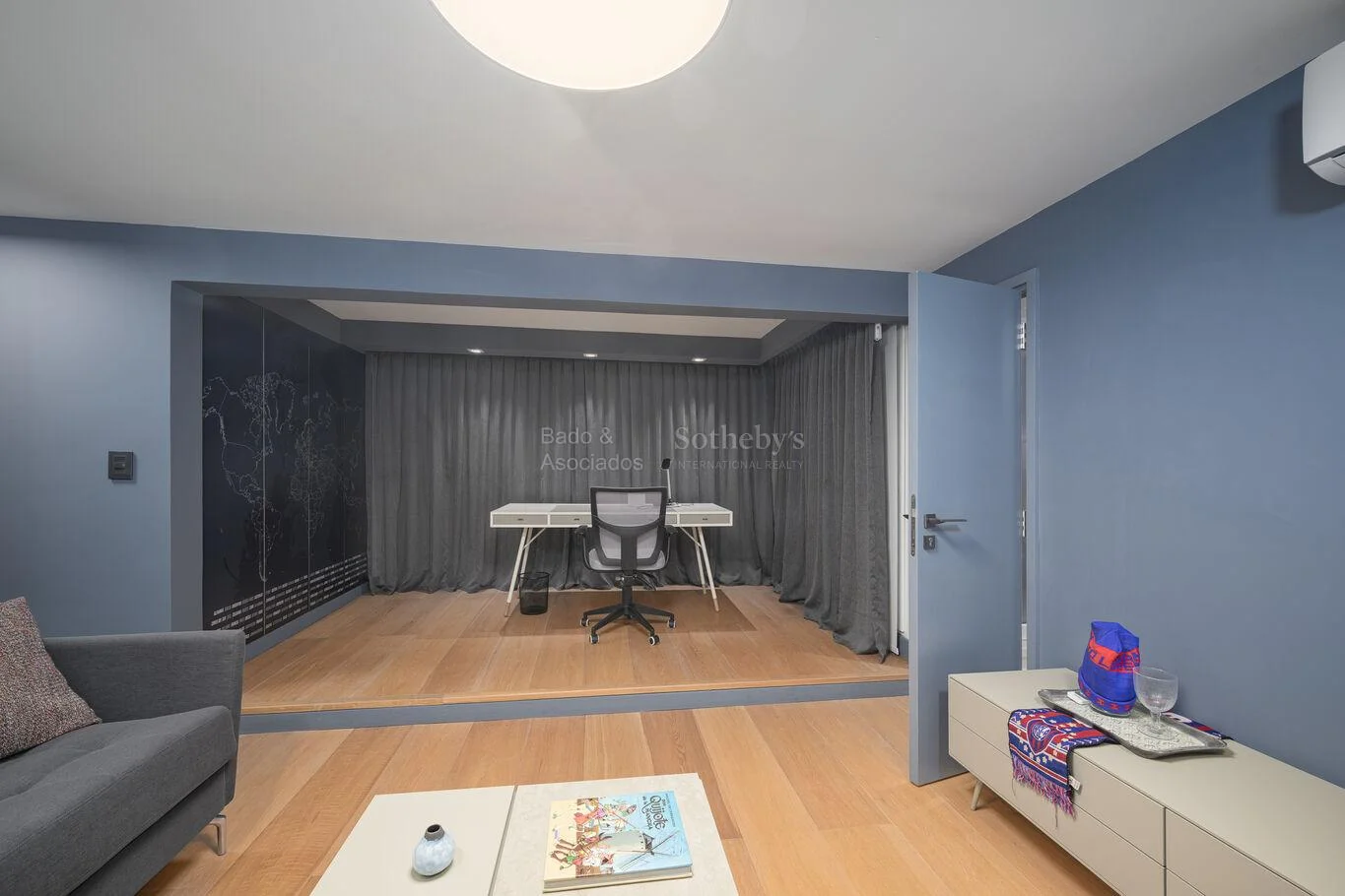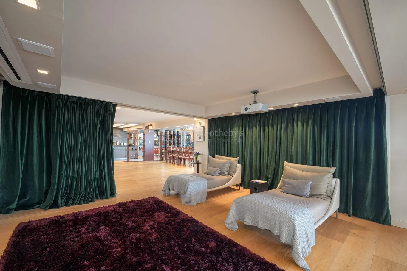La propiedad incorpora además una sala de cine y un amplio escritorio, respondiendo a las necesidades de trabajo remoto y entretenimiento de un perfil ejecutivo.