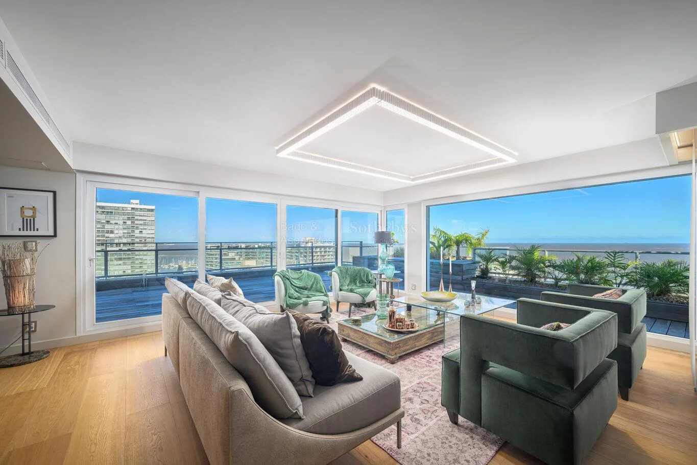 Con 322 m² interiores y 135 m² de terrazas, la propiedad ofrece una escala poco habitual en el mercado de alquiler, combinando amplitud, diseño y vistas abiertas a la Bahía de Pocitos.