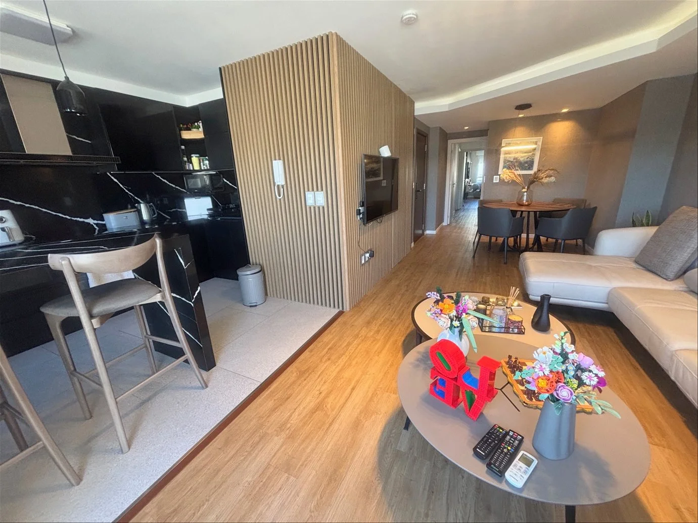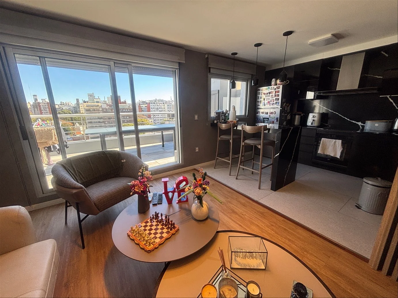 Amplio living comedor, amplia cocina integrada con equipamiento de alta calidad, 2 dormitorios muy amplios en suite con placares, baño social.