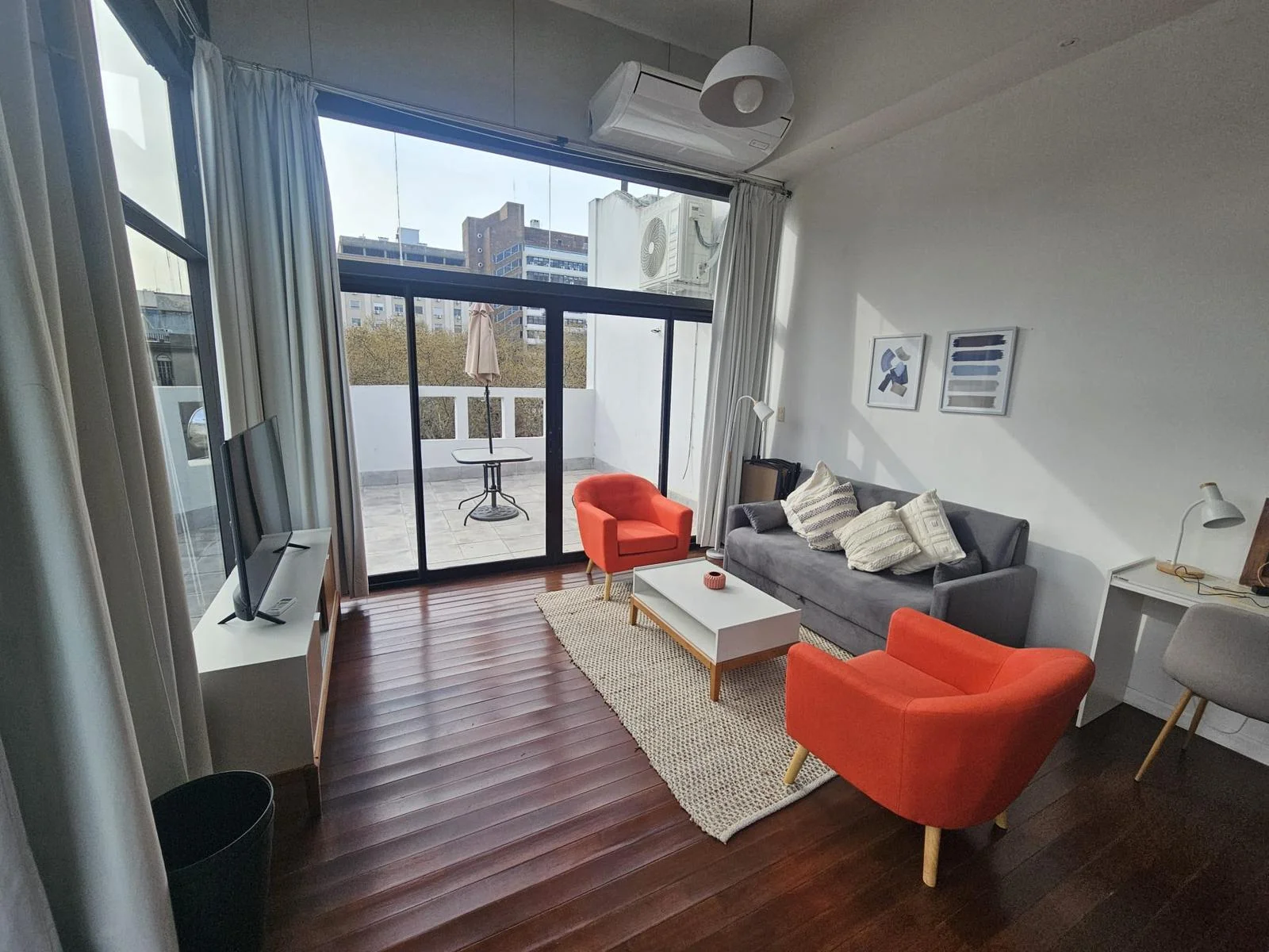 Pent House frente a la plaza Matriz, duplex. Es un loft duplex totalmente reciclado con una gran terraza y lujosamente equipado. Tiene 80 m2 + una gran terraza de 40 m2. 1 dormitorio, living, cocina, baño y terraza. Camaras de seguridad.