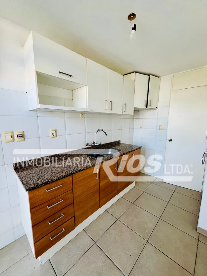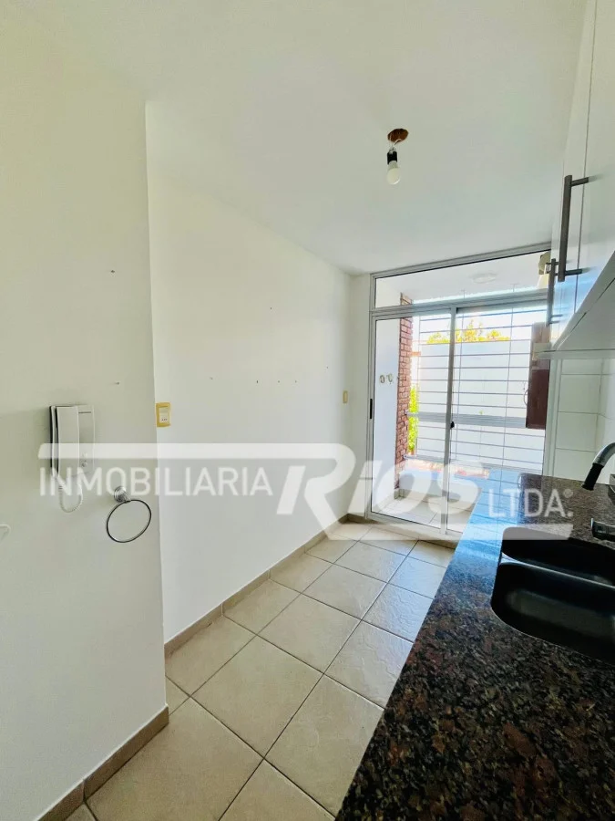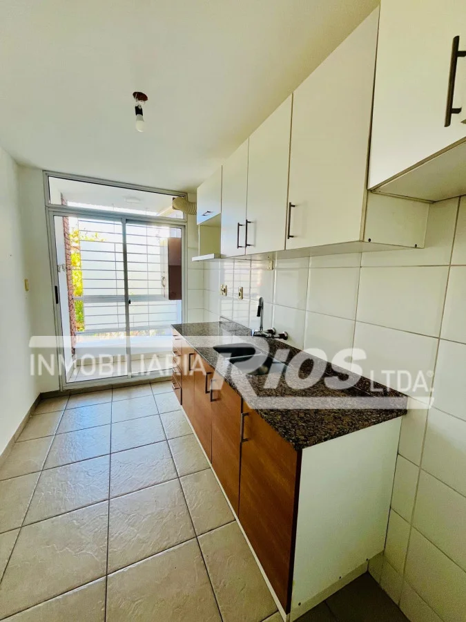 Amplia cocina definida con terraza lavadero y muebles aéreos y bajo mesada.