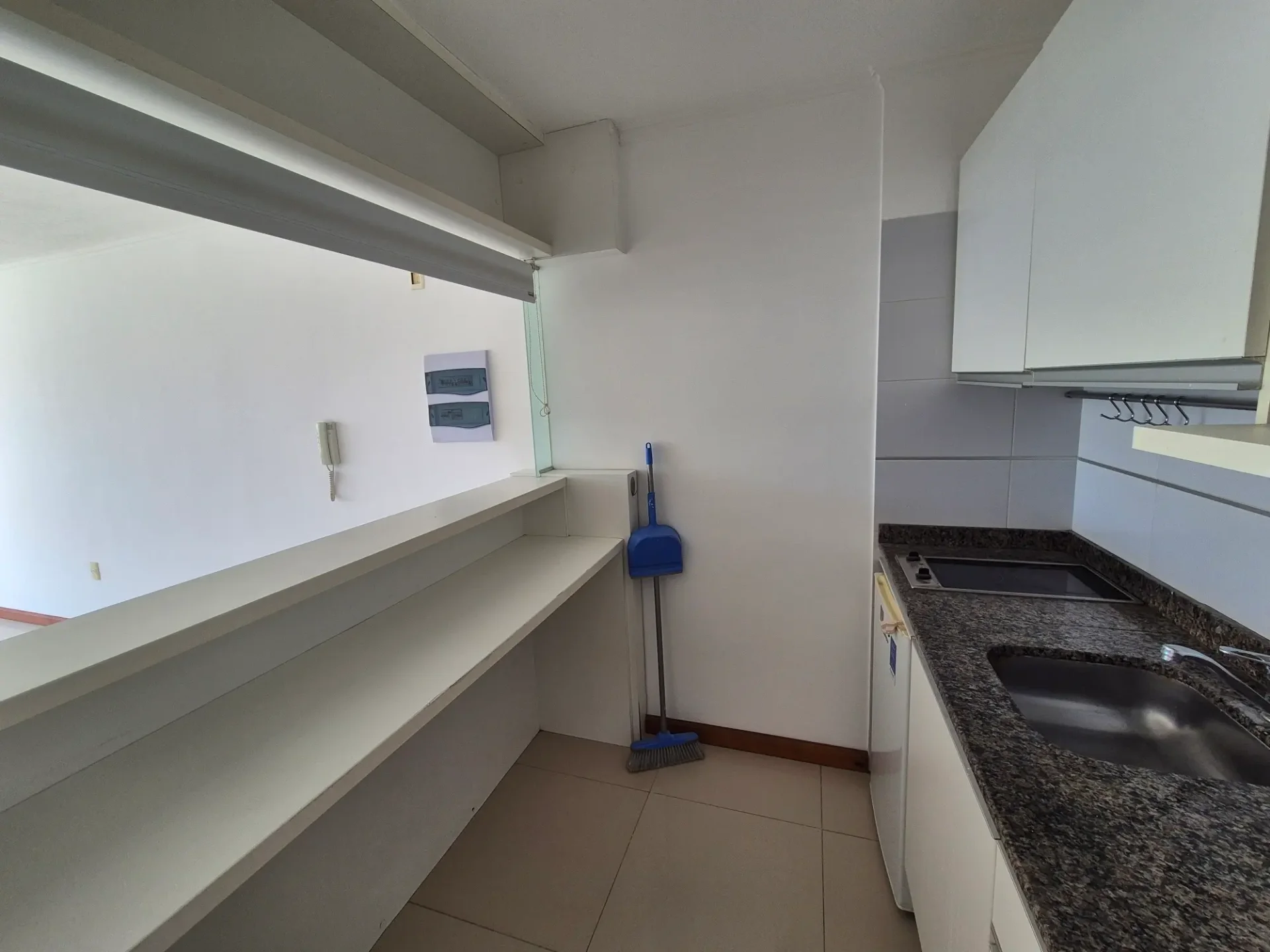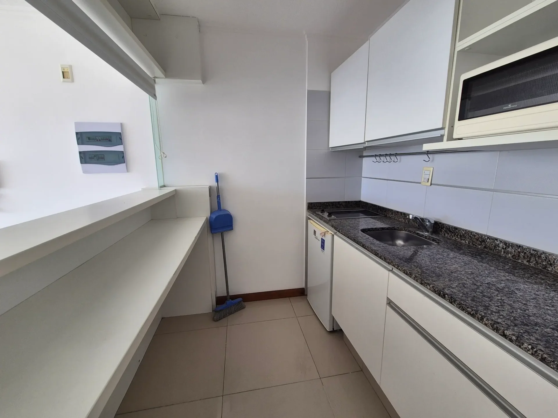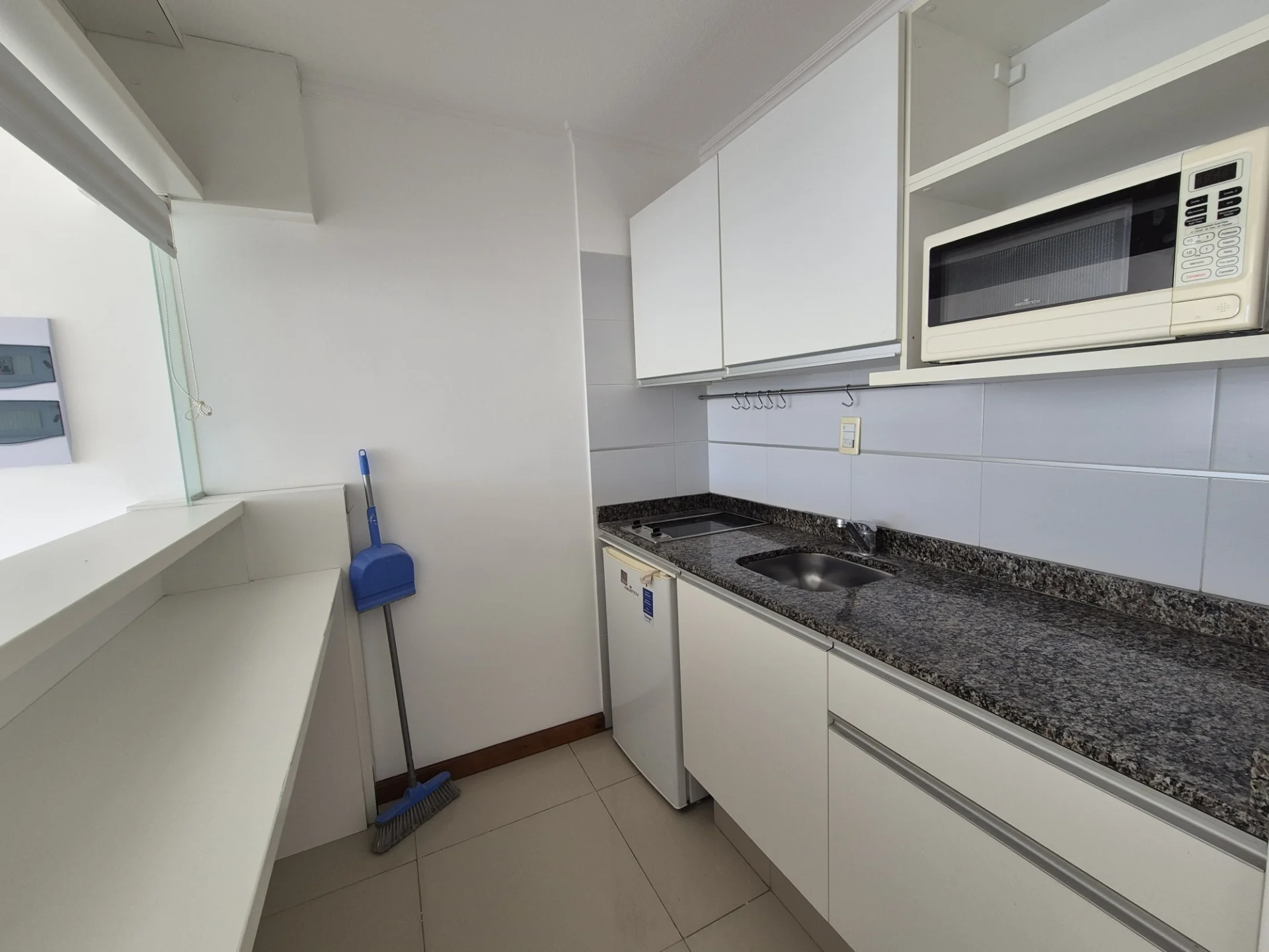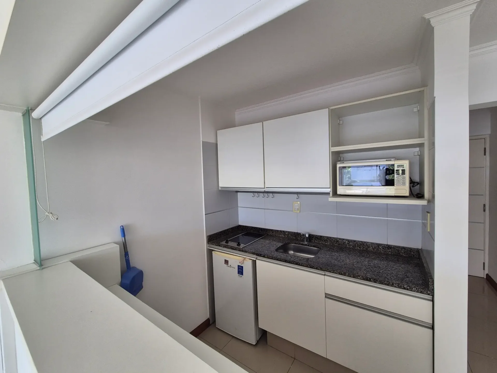 Cocina semi integrada equipada con cocina, microondas y frigobar