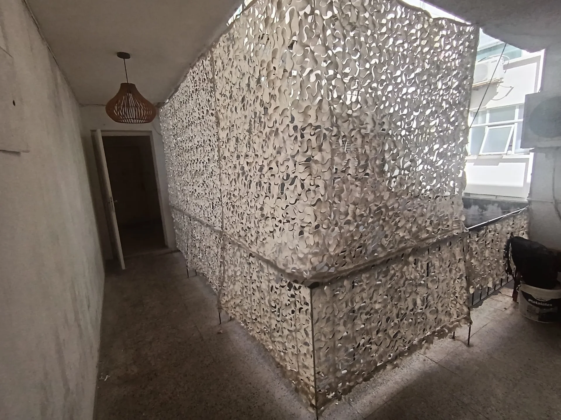 Amplia terraza en L de uso exclusivo de apartamento, donde hay conexiones para lavarropa