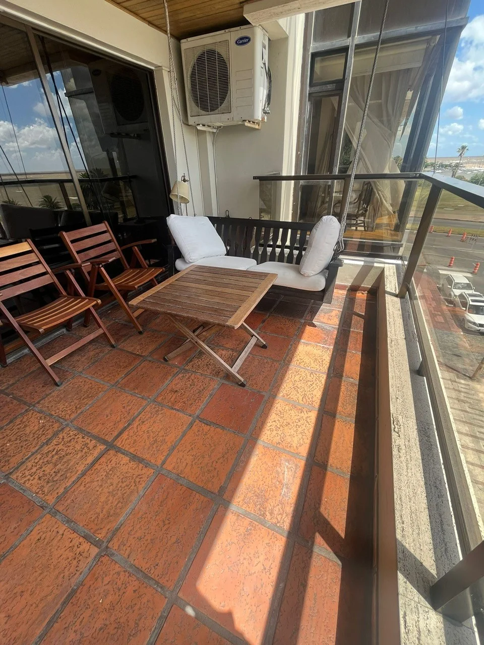 Apartamento de finas terminaciones frente al Golf: 3 Dormitorios con servicio completo Cocina con Office Parrillero propio Suite principal al frente con vestidor y acceso a terraza Ambientes amplios Garaje 1 auto Gastos comunes bajos Loza Radiante Central