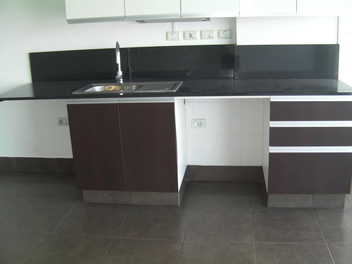 Living comedor con cocina integrada, placares sobre y bajo mesada.
