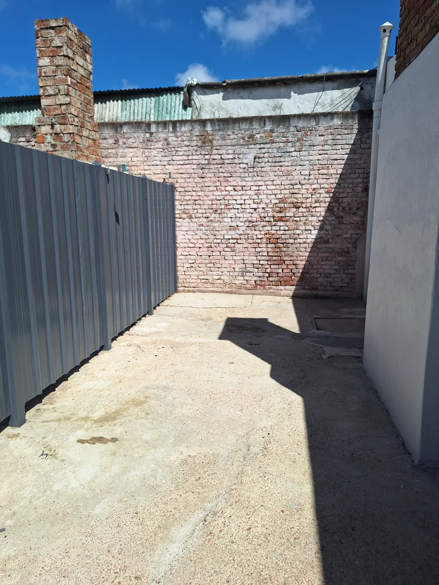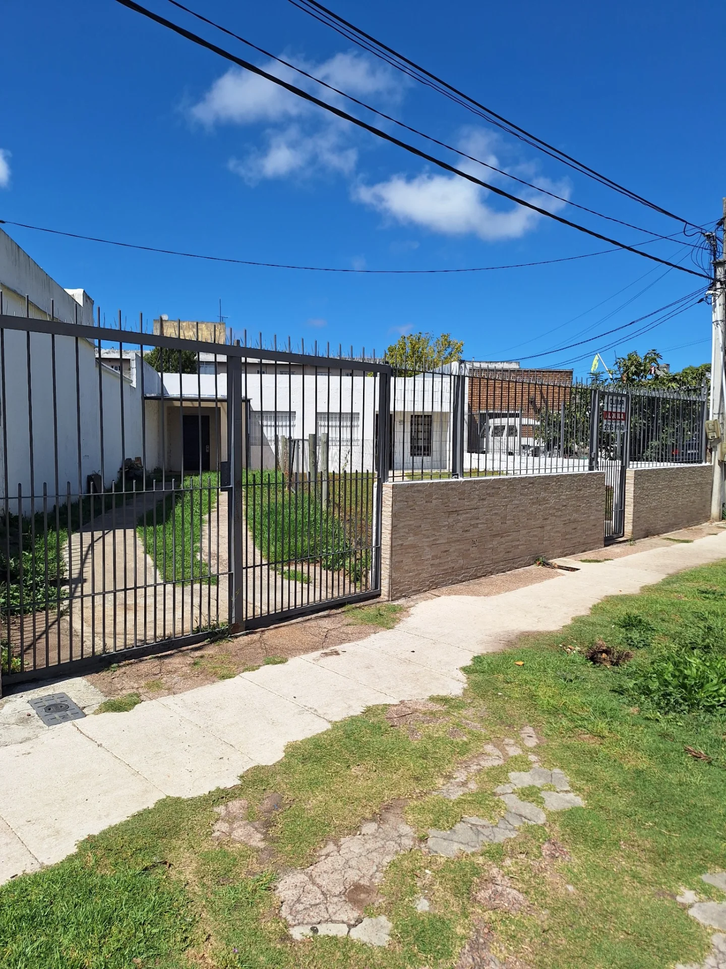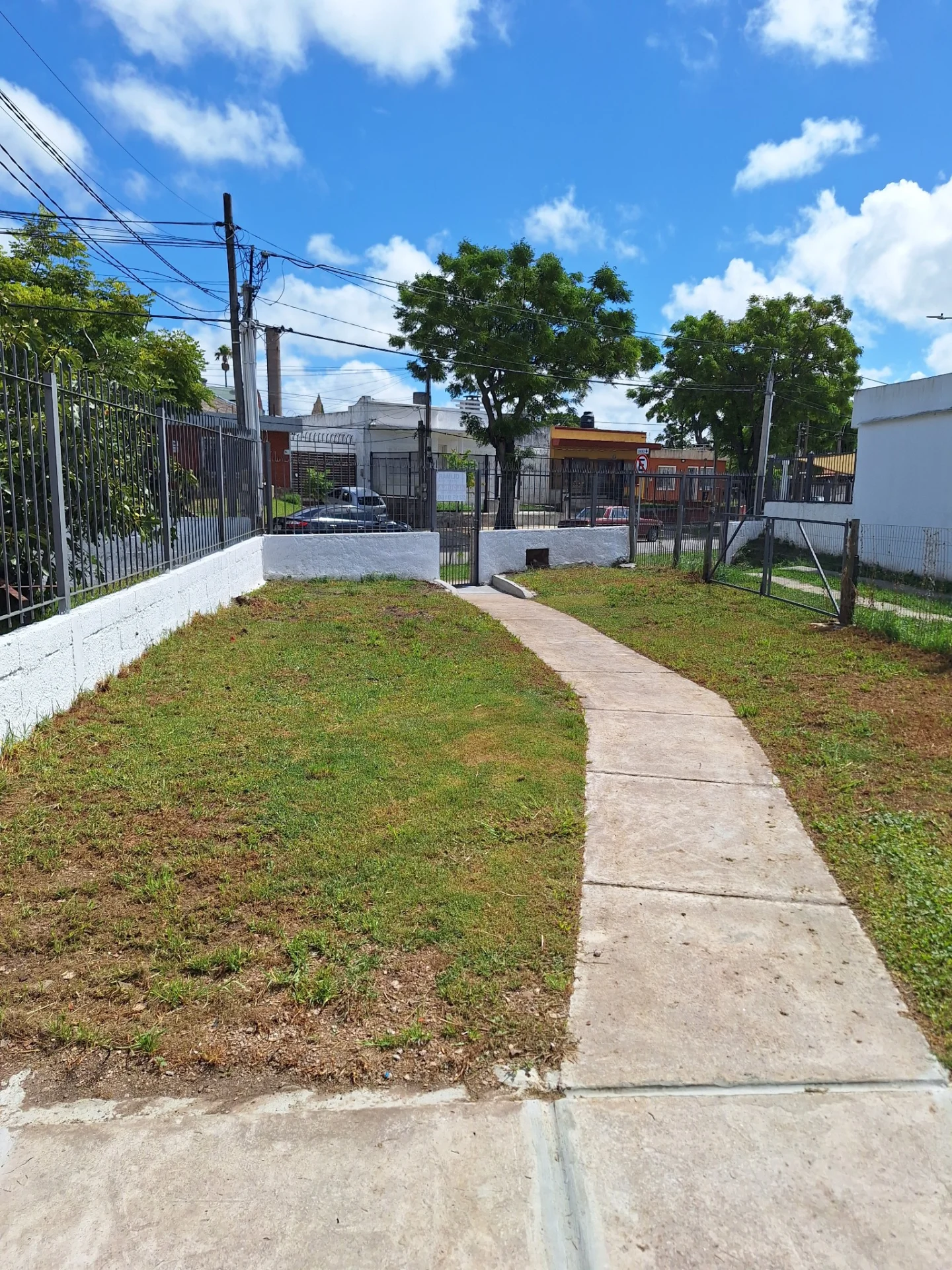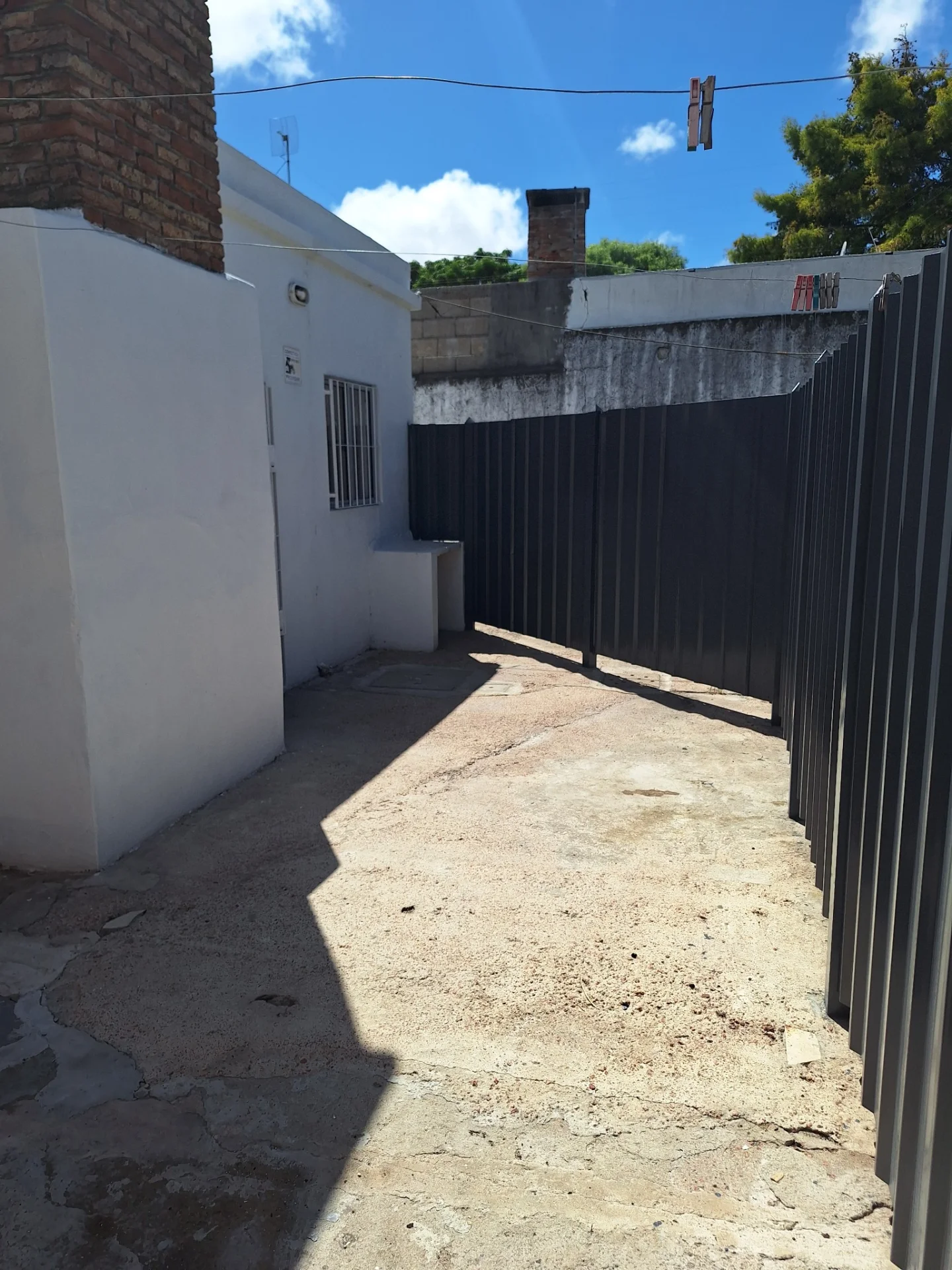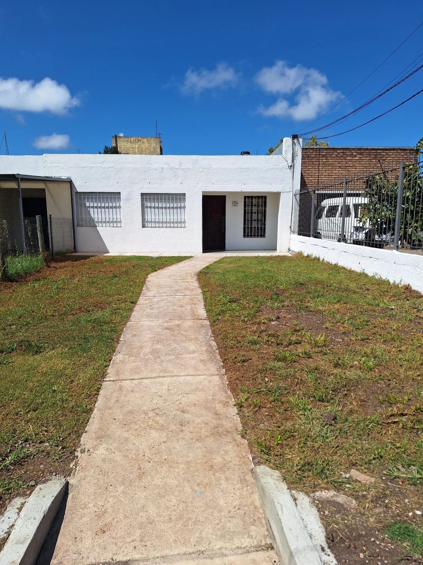 Casa al frente con jardin y entrada para coches y patio tendedero al fondo.