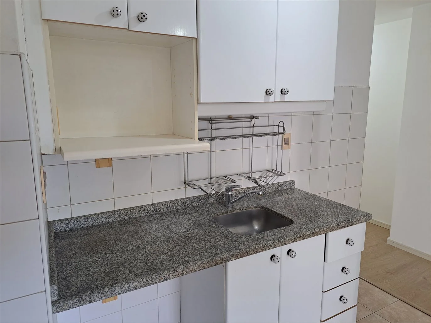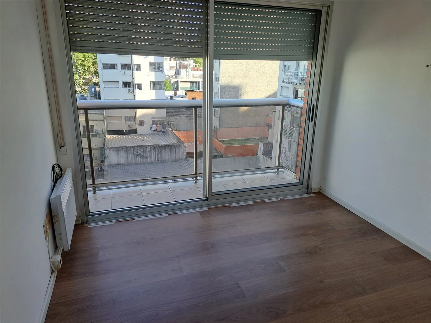 POCITOS.- Moderno edificio ubicado sobre la Avenida Sarmiento entre las calles Luis de la Torre y Obligado.- Se ubica en el 6o. Piso al contrafrente, muy luminoso.- Consta de living-comedor con pisos de madera flotante, balcón con salida desde el living y desde el dormitorio con vista muy despejada, cocina semi integrada con muchos placares sobre y bajo mesada de granito, instalación para lavarropas dormitorio amplio con amplio placard, piso de madera flotante, calefacción eléctrica, baño completo con calefón instalado.- Portería y Vigilancia las 24 horas.- Barbacoa común con amplio patio.- OPCION GARAGE INDIVIDUAL EN EL EDIFICIO : $ 4.000