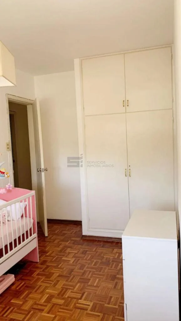 Los dos dormitorios tienen amplios ventanales, placares empotrados y pisos de parquet; uno de ellos cuenta con aire acondicionado.