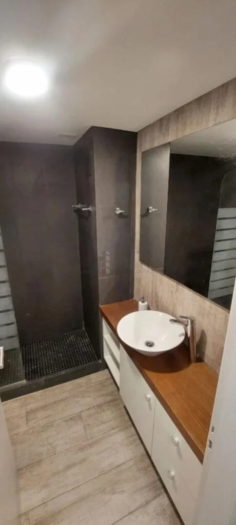 Amplio ambiente con cocina integrada, baño con conexión para lavarropas, gran placard, patio y cochera (chica) con entrada compartida para auto pequeño o moto.