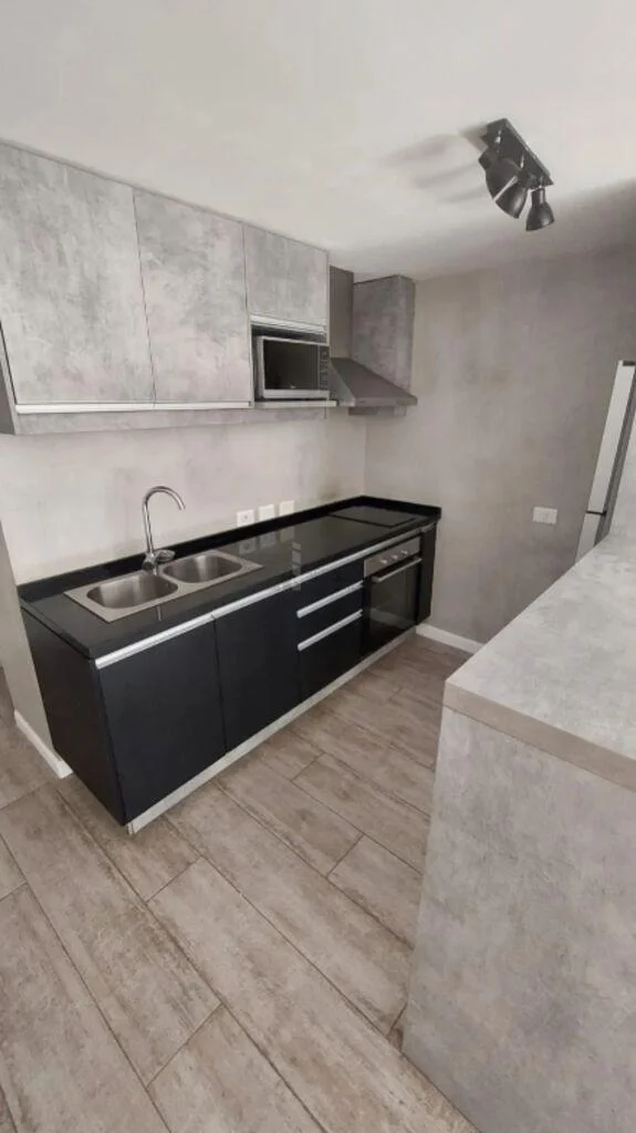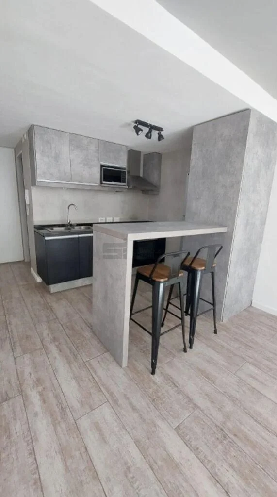 Se entrega equipado con horno, anafe, extractor, aire acondicionado, heladera, microondas, calefón, cortinas roller blackout, luminarias y taburetes.