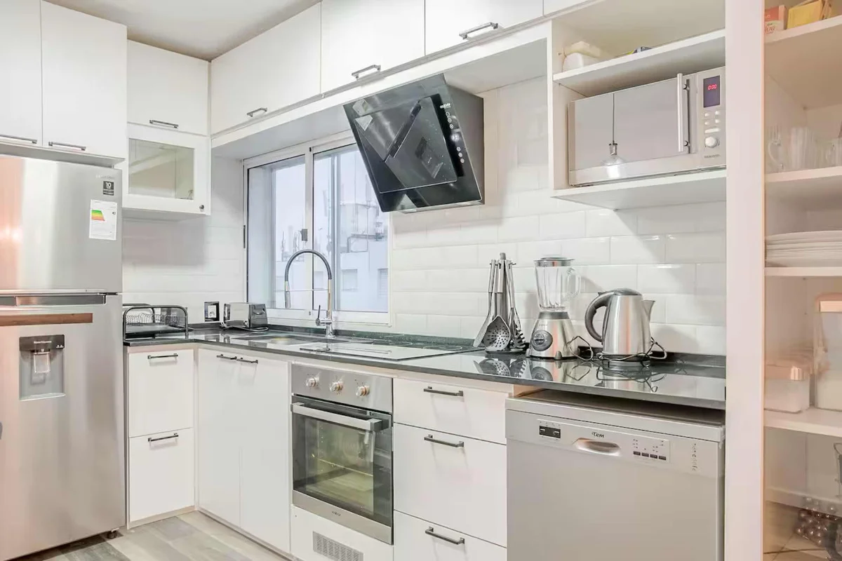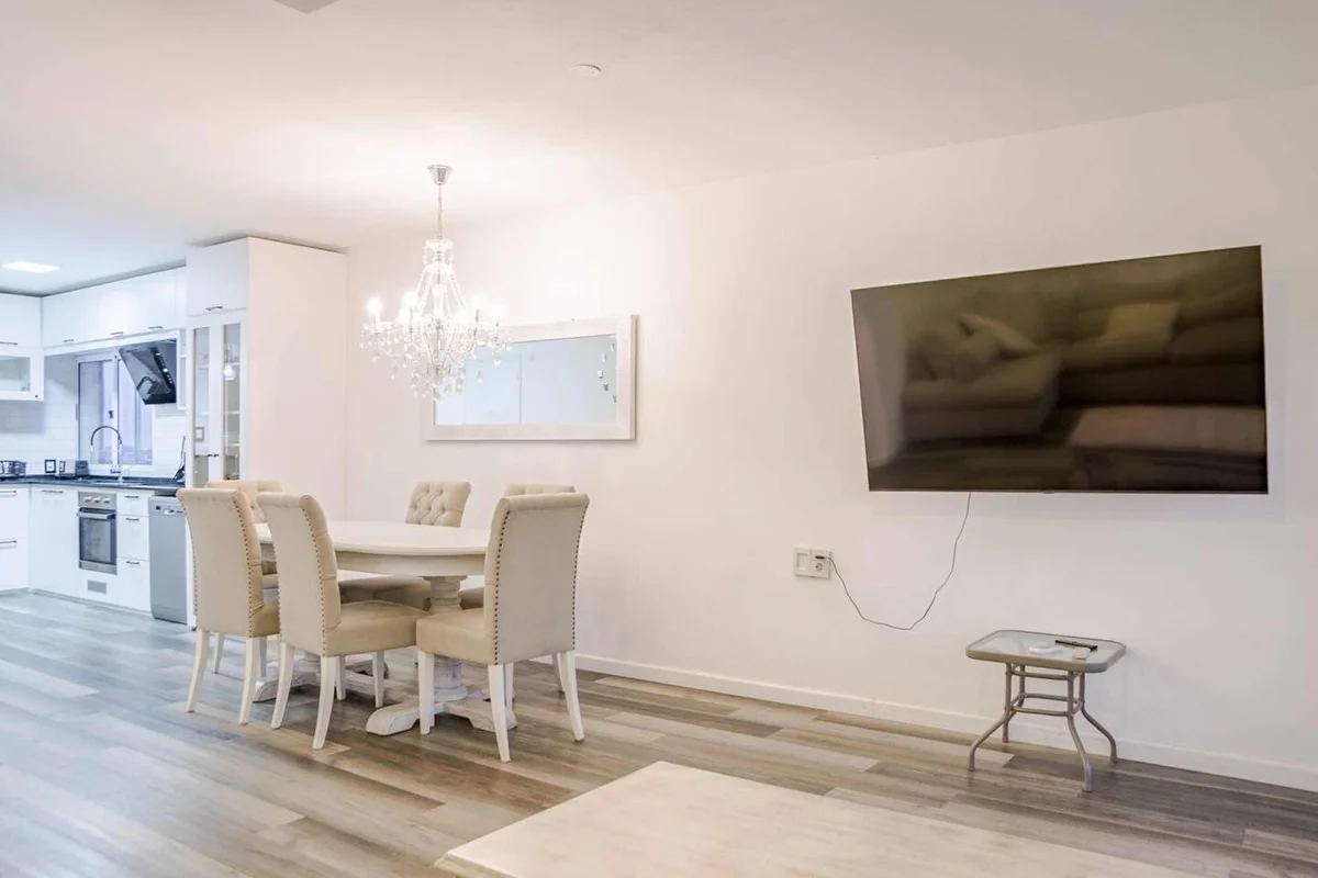 En alquiler apartamento totalmente amuebladode 3 dormitorios y 2 baños, con cochera espaciosa.